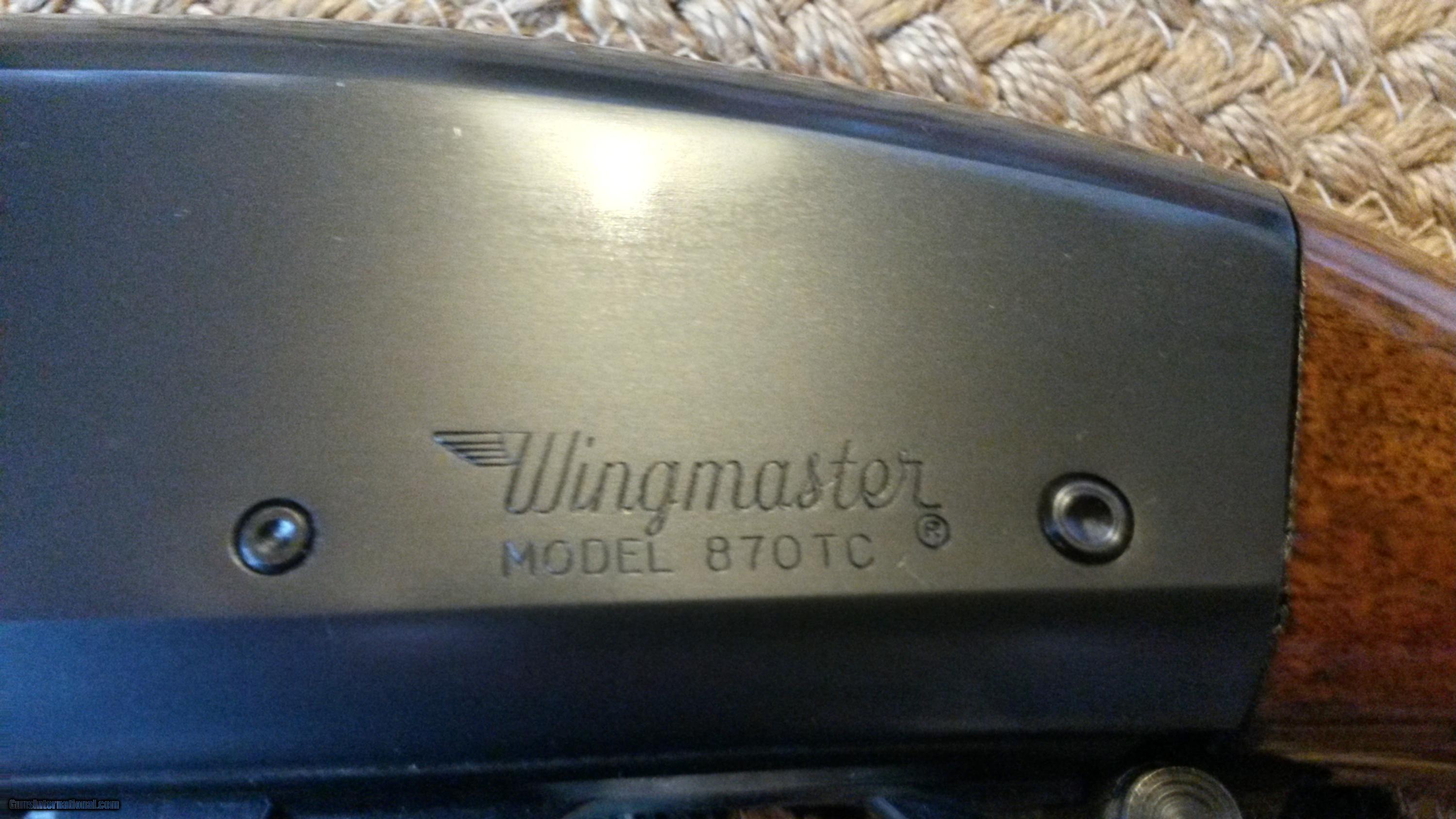 Description: REMINGTON "WINGMASTER 870TC 12 Gauge Shotgun. Trap Grade with high grade, beautiful highly figured walnut stocks and a special vent rib. The T stands for Trap dimension and C stands for grade of wood. C Grade Wood is top of the line with Cut Checkering. Has White Bead on Front of Rib with Small Bead in middle. Deccelerator Pad on buttstock. Light handling scratches on buttstock. Metal condition is excellent. SOLD Manufacturer: Remington Model: 870TC Serial Number: 37920V Caliber Info: 12 Ga. Bore: Trap Condition: Excellent Metal Condition: Excellent Wood Condition: Excellent Bore Condition: Excellent |