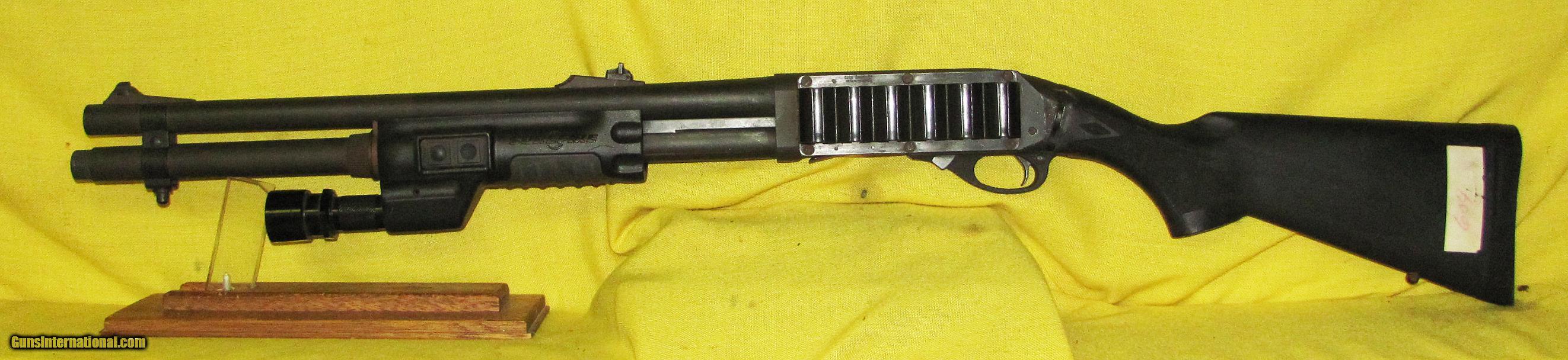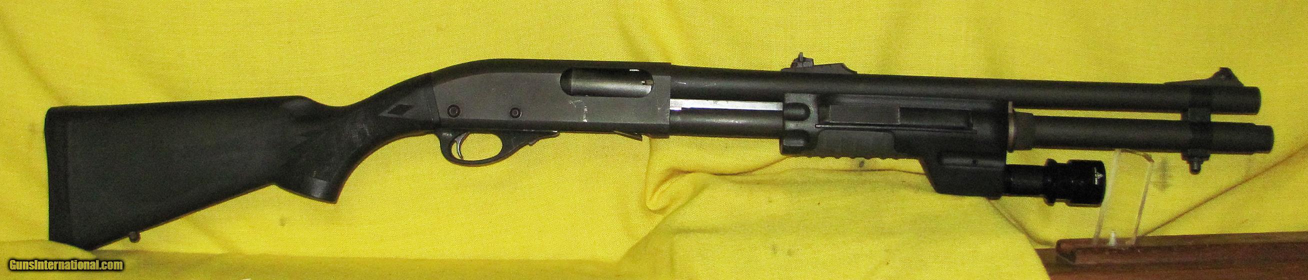 Description: REMINGTON (TACTICAL) 870 POLICE MAGNUM IN 12 GA. CAL., WITH 20" BARREL. COLOR PARKERIZED. CONDITION 95%. SERIAL NUMBER B774380M. REMINGTON MODEL 870 POLICE MAGNUM (TACTICAL), 2 ¾” AND 3” CHAMBER, BRIGHT BORE, EXCELLENT STOCK, SUREFIRE SENSOR PUMP FORE ARM WITH SUREFIRE LIGHT, RIFLE FRONT WITH RIFLE REAR SIGHT, EXTENDED MAGAZINE TUBE, SADDLE SHELL HOLDER, 95%+ OVERALL CONDITION. OUR NEW STOCK # D32748. SOLD |