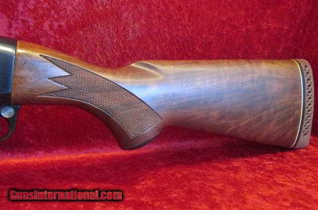 Description: 870 WINGMASTER MAGNUM by REMINGTON Black Walnut Exhibition Stock This Remington 870 Wingmaster Magnum is a fine example. The stock and forearm highly compliments this firearm. The 30" full choke barrel has a silver front bead sight. Shows no rust ir pitting, has a couple of light handling marks, on the left side it is stamped full. 90% condition overall. Grat oil finish. Standard trap hight stock, drop at comb 1.5", at heel 2 1/8"