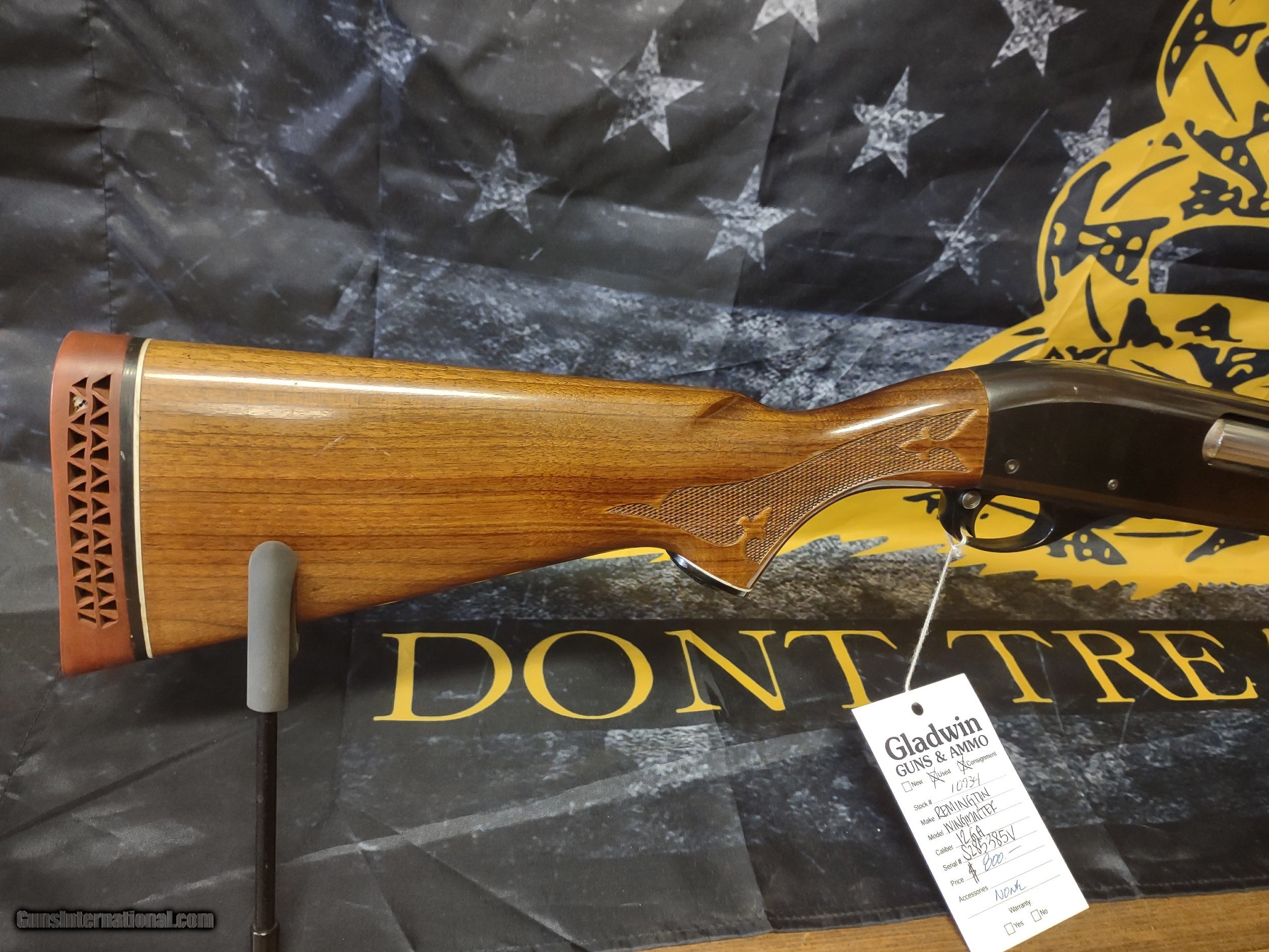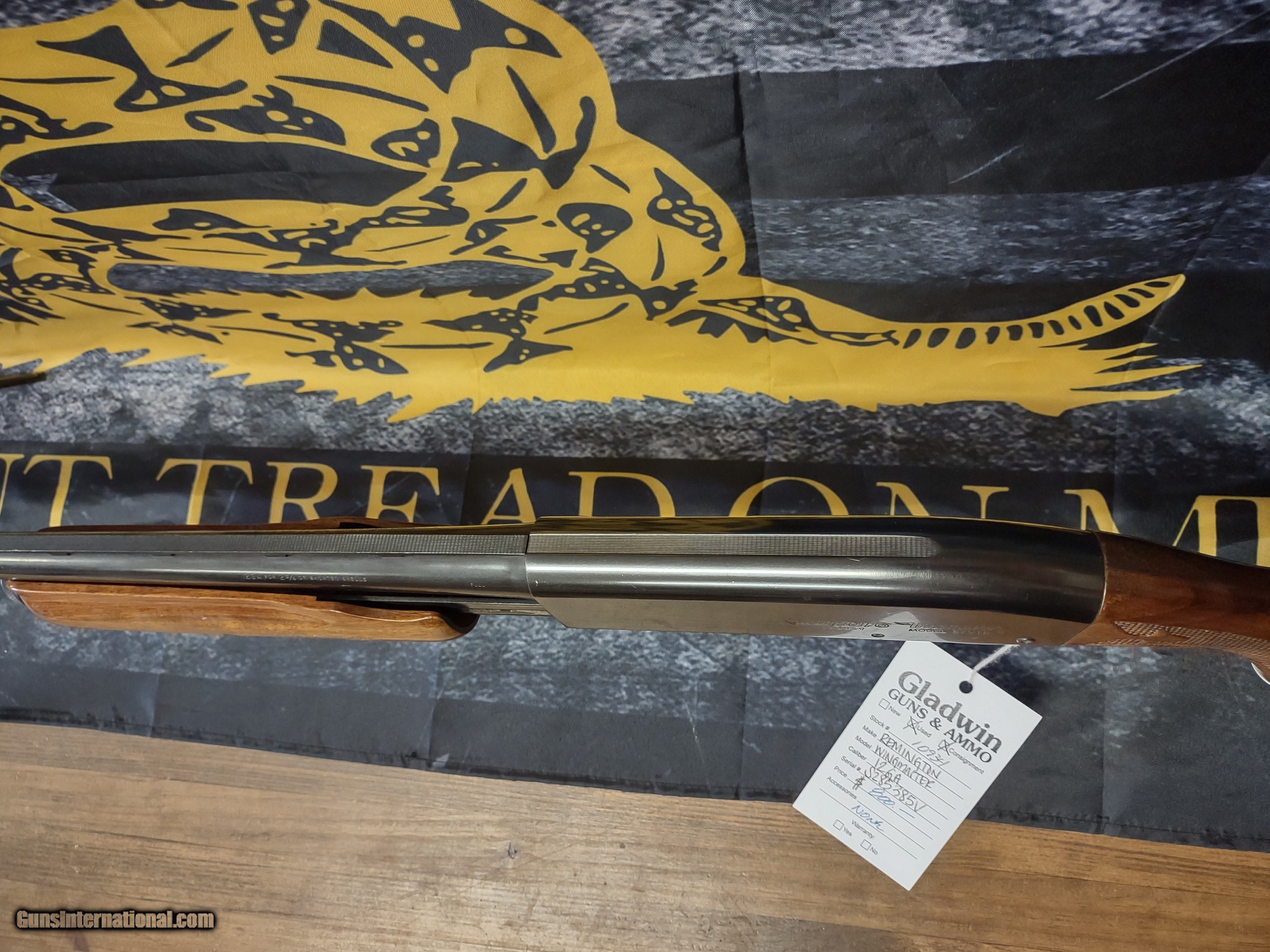 Description: Remington Wingmaster Model 870TB 12 gauge Pump Action Shotgun. Wood stock and barrel have scratches. Please see pictures for reference. SOLD Shotgun Gauge: 12 Gauge Manufacturer: Remington Model: Wingmaster Serial Number: S285385V Barrel Length: 30 Chambers: 2 3/4 Condition: Used Metal Condition: Worn Wood Condition: Minor Scratches Bore Condition: Minor Scarches Action: Pump Action Finish: Blued Weight: 7lbs 8oz |