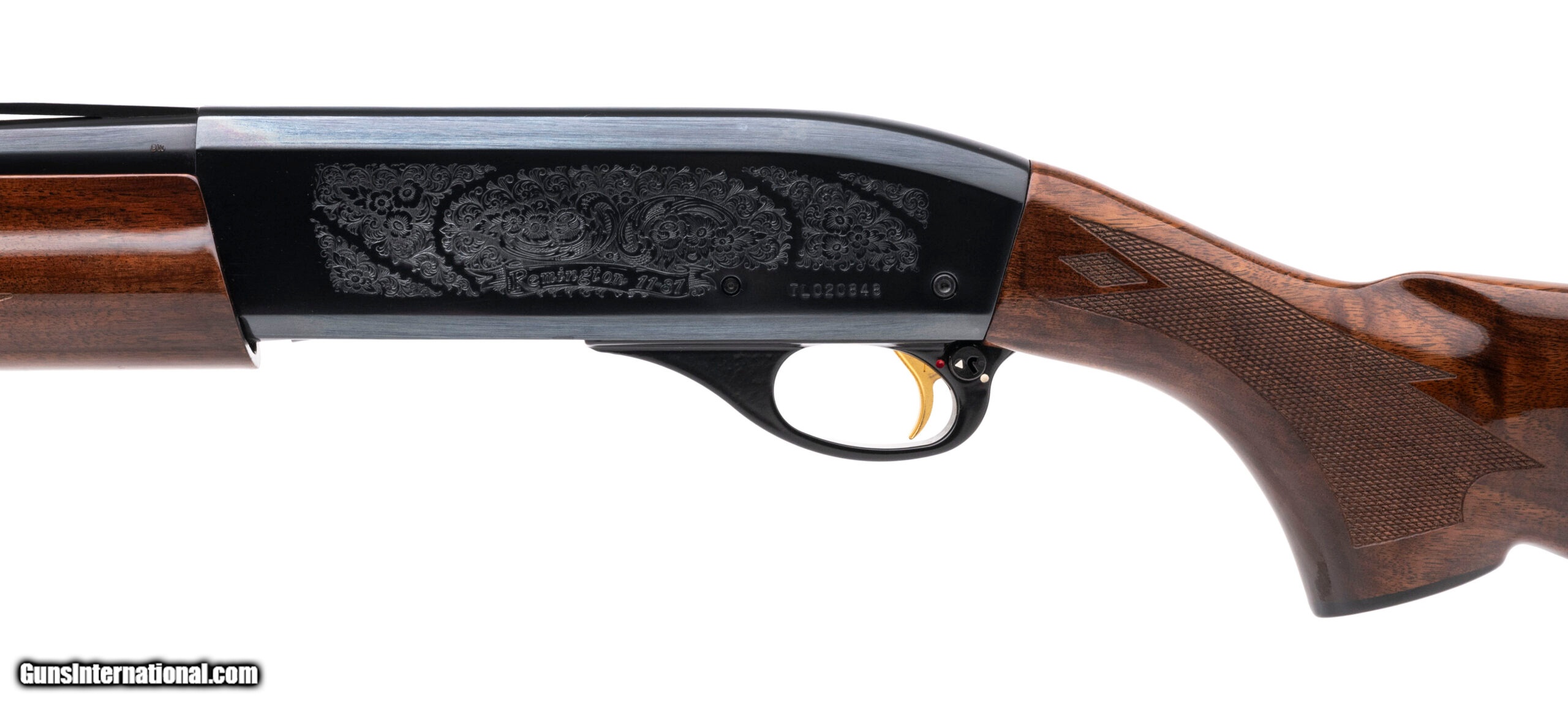 Description: "SN: TL020848. Made in 2002, 20 Gauge with an 26"" vent ribbed barrel. Bore is bright. Semi-Auto Sporting shotgun with an engraved receiver. Finish is in excellent condition. Wood stock and forend are in excellent condition. SOLD |