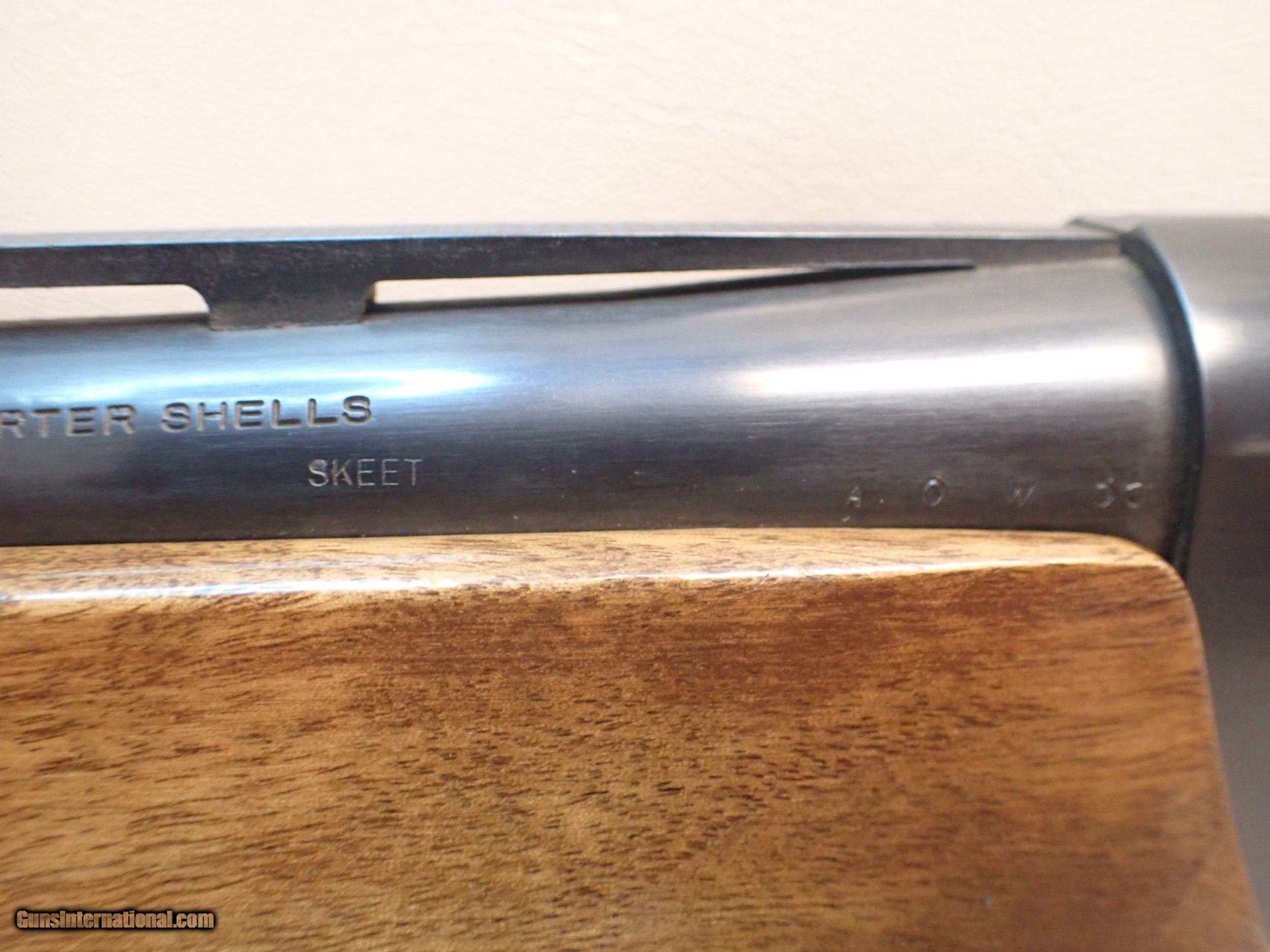 Description: Remington Model 1100 20ga semi automatic shotgun dated to 1972, via the "OW" barrel code. This shotgun features the classic and well-loved 1100 semi automatic mechanism, with press-checkered walnut furniture, a rich blued finish, and decorative engraving in areas of the receiver. The barrel is vent ribbed with a front and middle bead. The shotgun is in excellent overall condition and appears to have seen some light use, as shown. The action is smooth and the bore looks great. Please refer to the photos prior to purchase. A wonderful field gun for hunting, or for busting clays! 14" LOP, Skeet choke. SOLD Shotgun Gauge: 20 Gauge Manufacturer: Remington Model: 1100 Serial Number: L605608X |