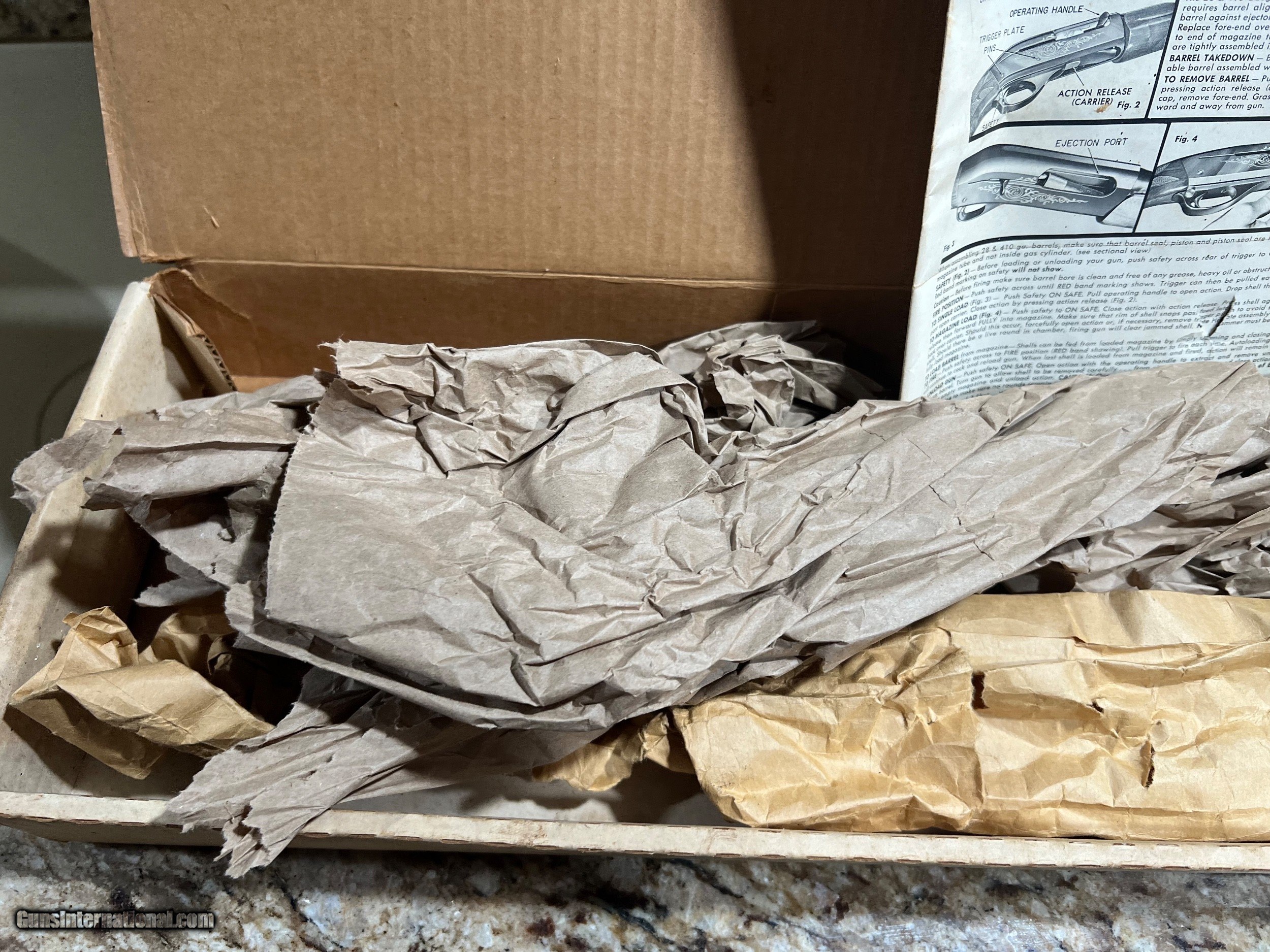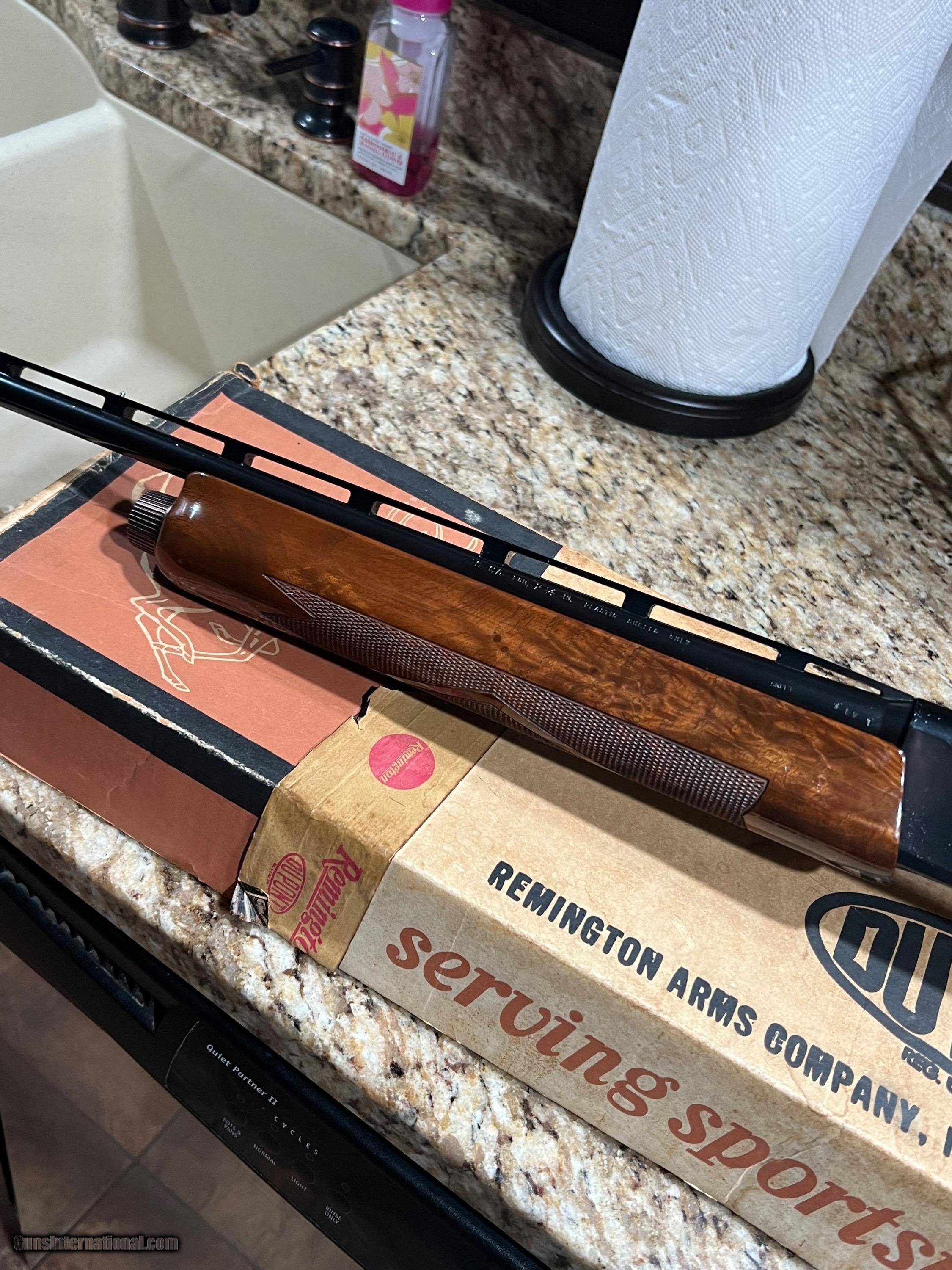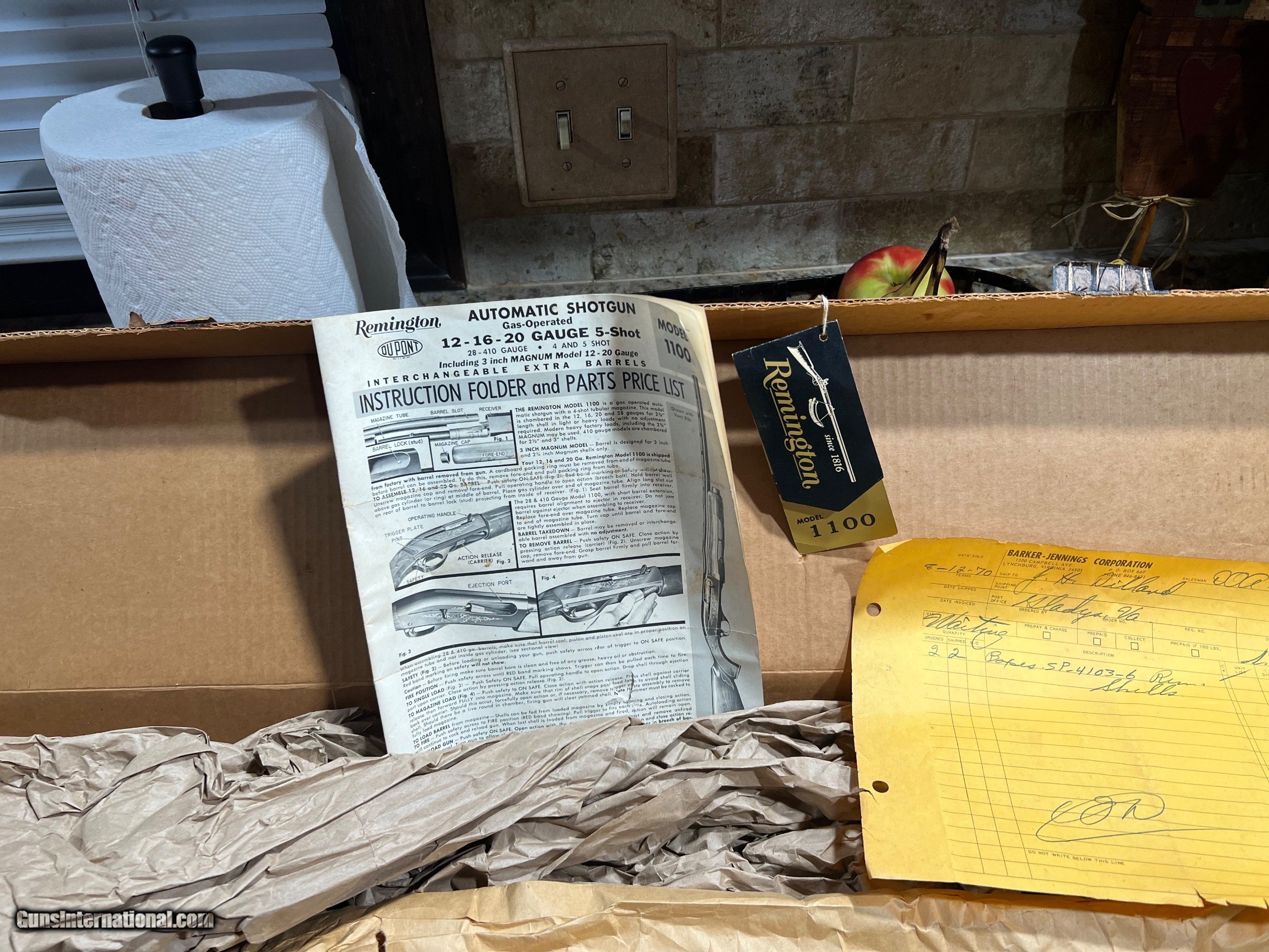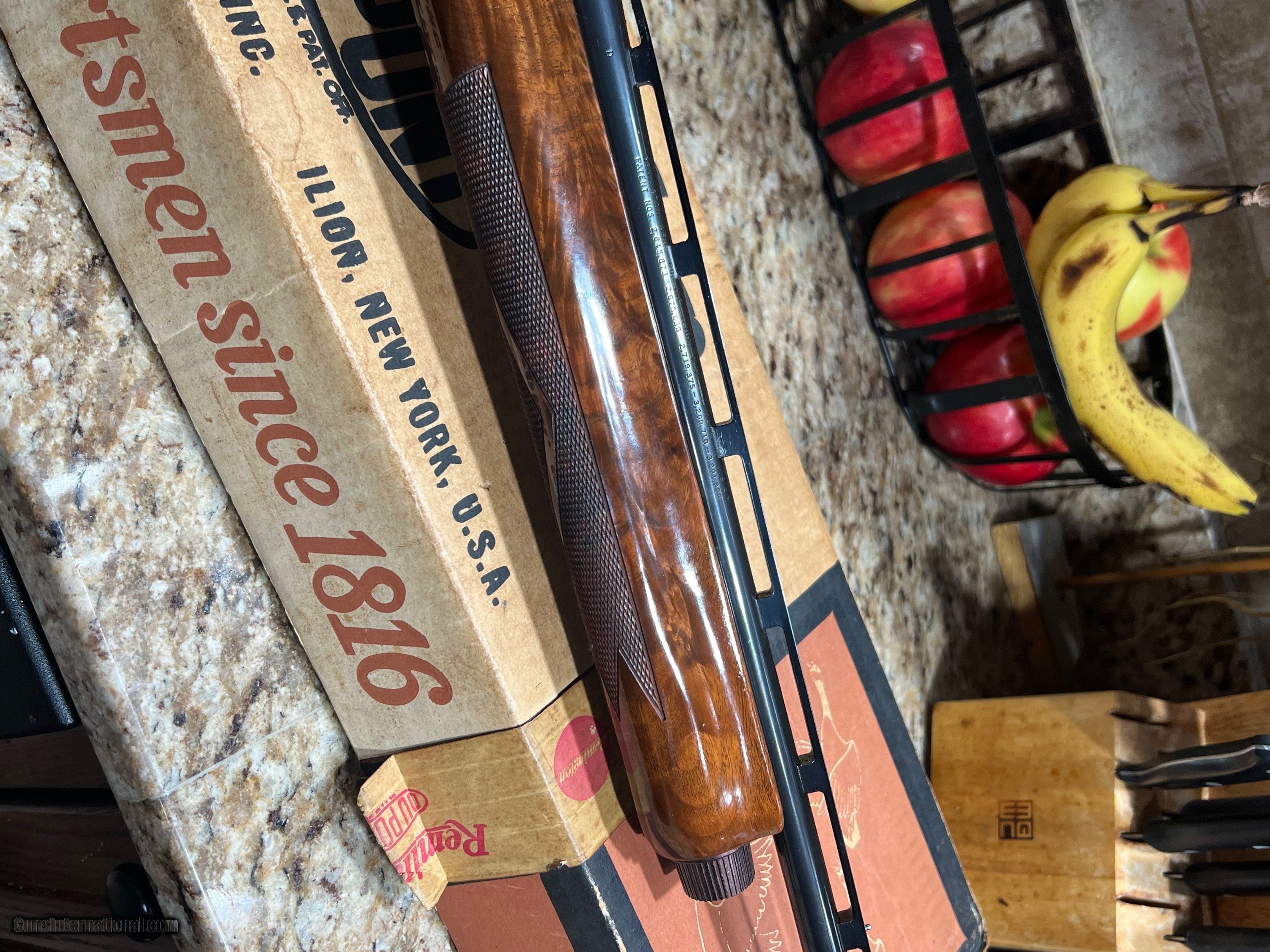 Description: New in DuPont box 1970 Remington 1100 410 with 25" vent rib barrel and skeet choke with outstanding wood 100% NEW pictures in awhile.......ON HOLD........, SOLD Shotgun Gauge: .410 Gauge Manufacturer: Remington Model: 1100 Barrel Length: 25 Condition: NEW Metal Condition: NEW Wood Condition: NEW Bore Condition: NEW Manufacture Date: 1970 |
