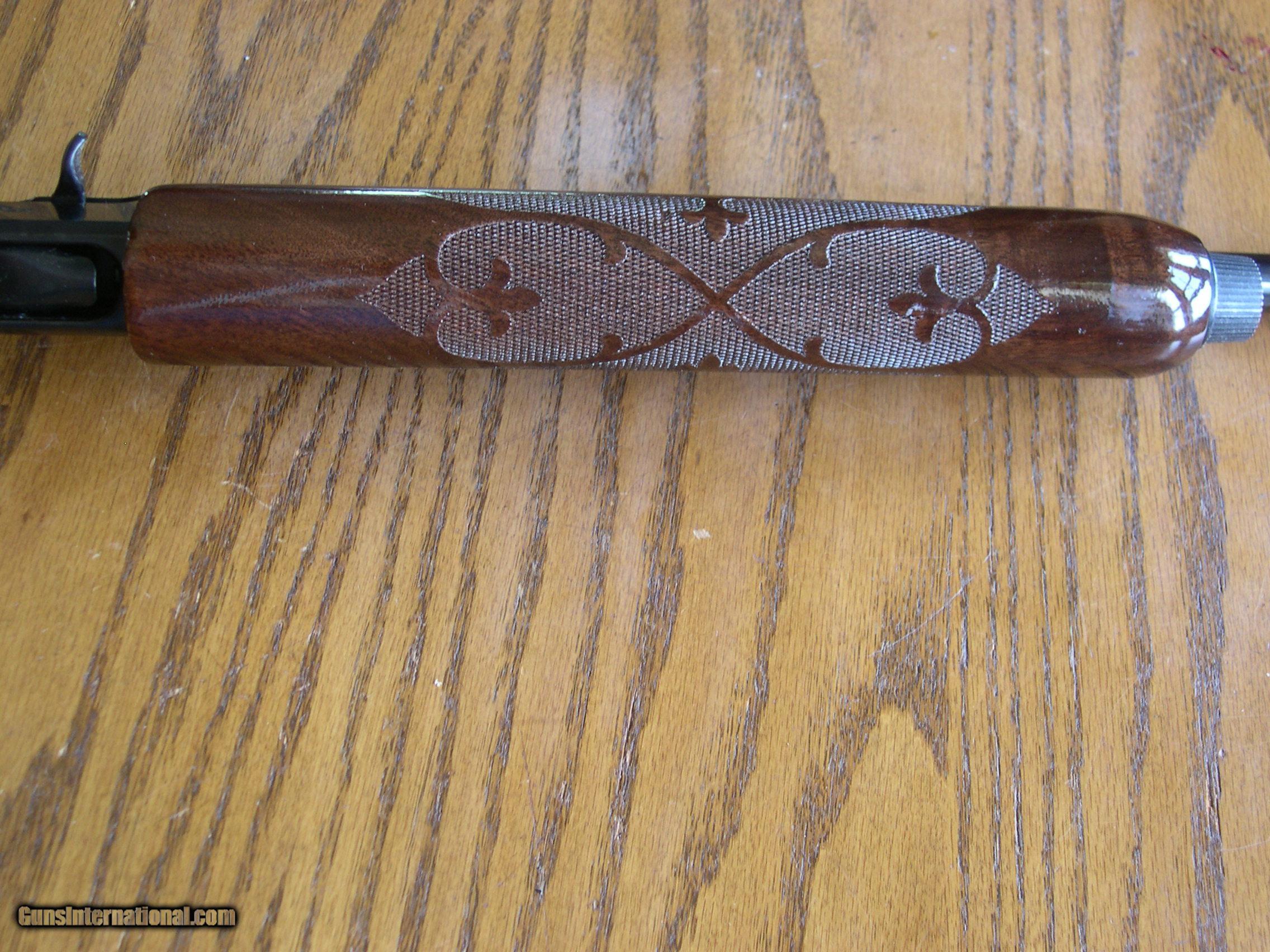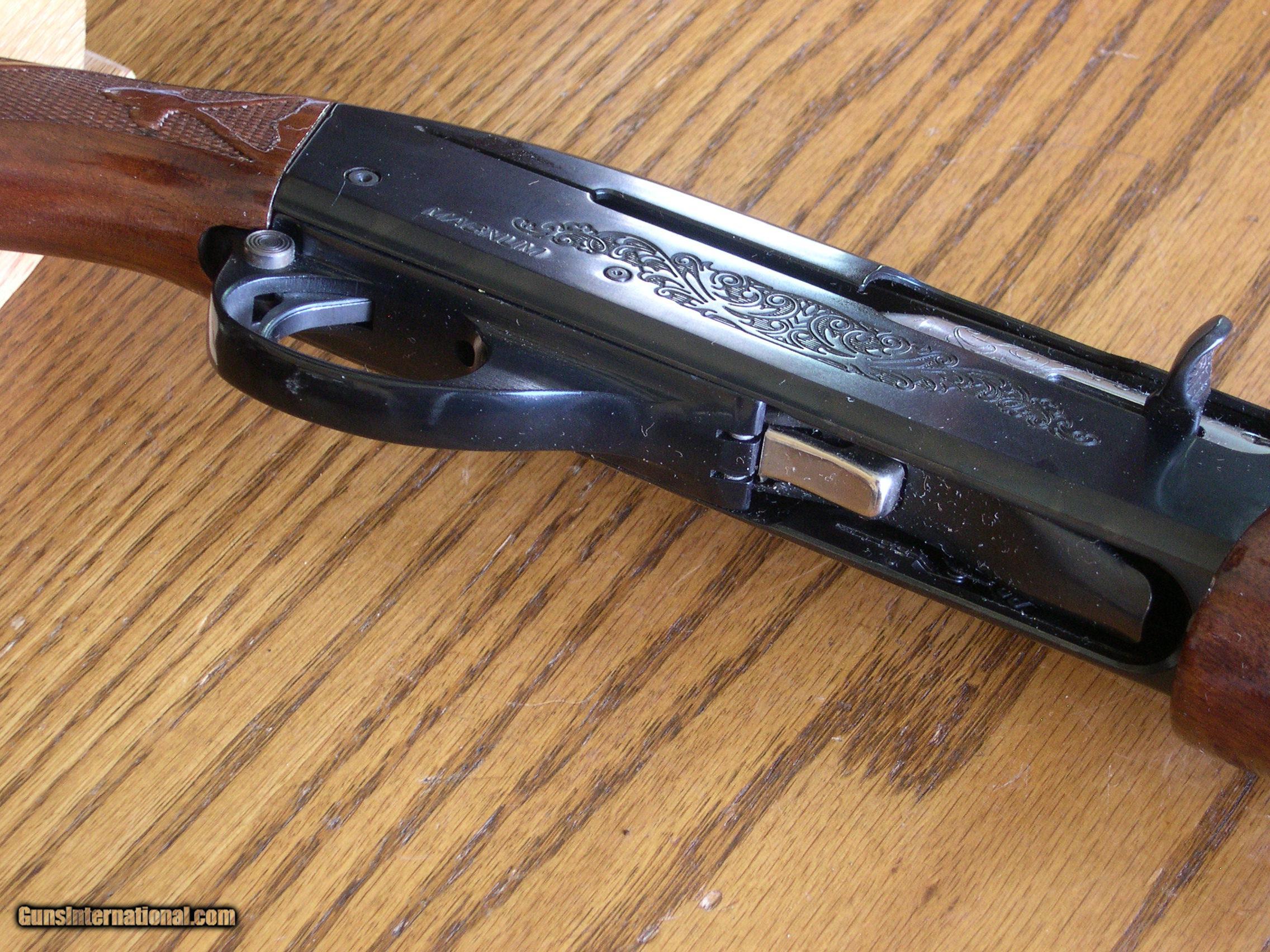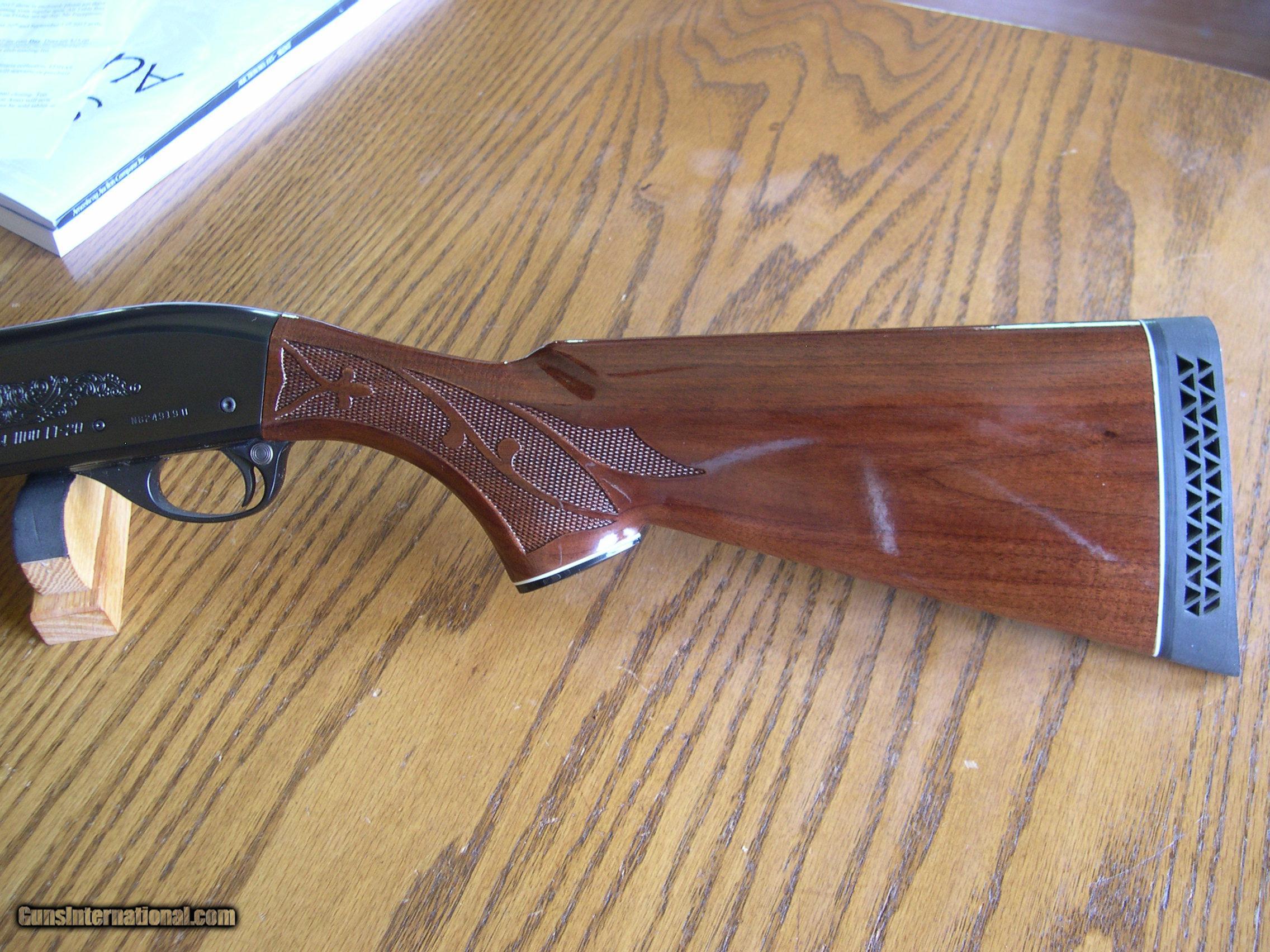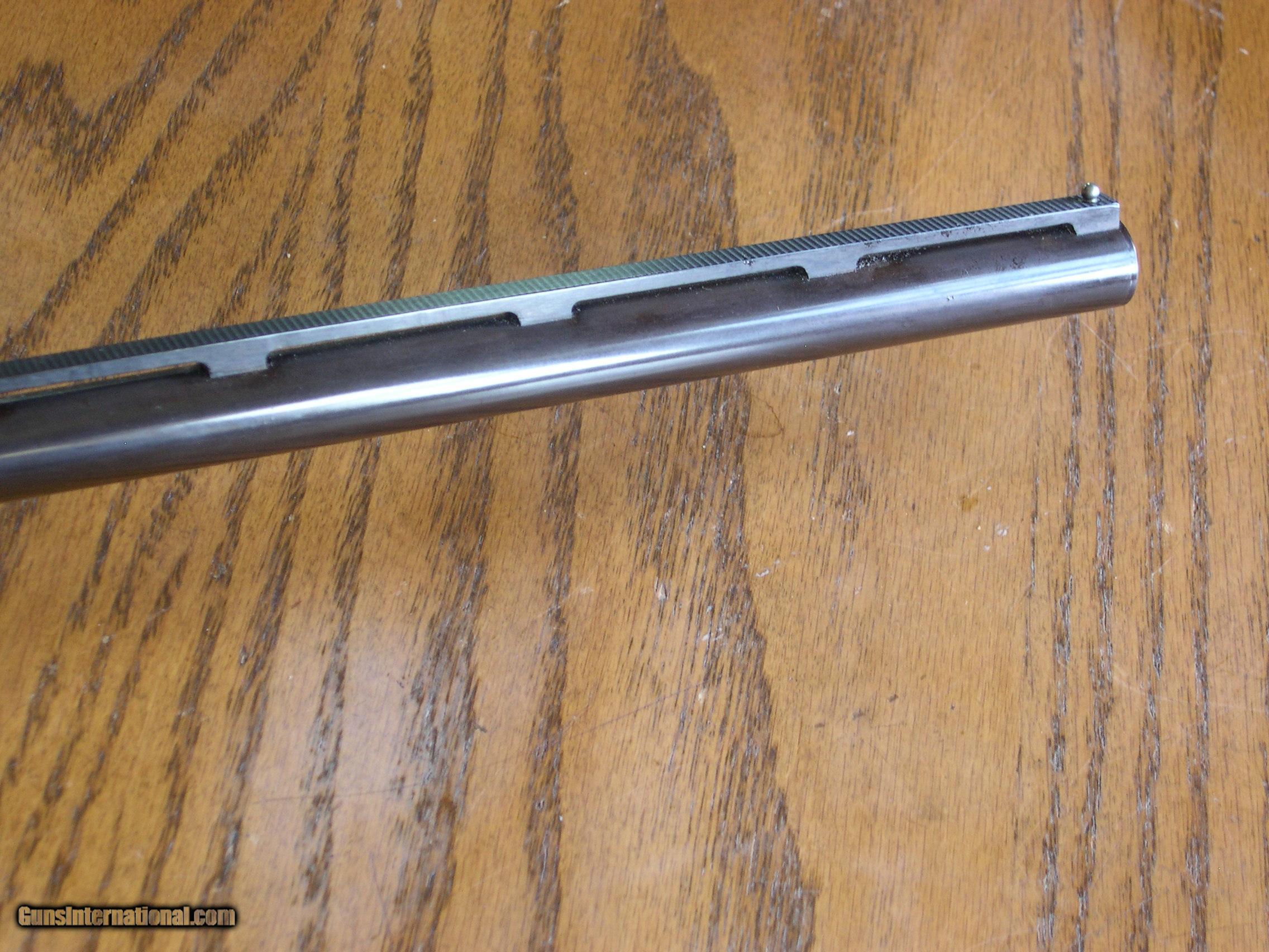 Description: This possibly unused 1100 20 Mag has 28" Vent Rib Mod Choke Barrel, takes 3" mag ammo, absolutely 99.9% Blue and beautiful wood, with Rem recoild Pad, 14" LOP, They don't get better than this one, no sign of being fired on bolt face, or inside barrel. SOLD |