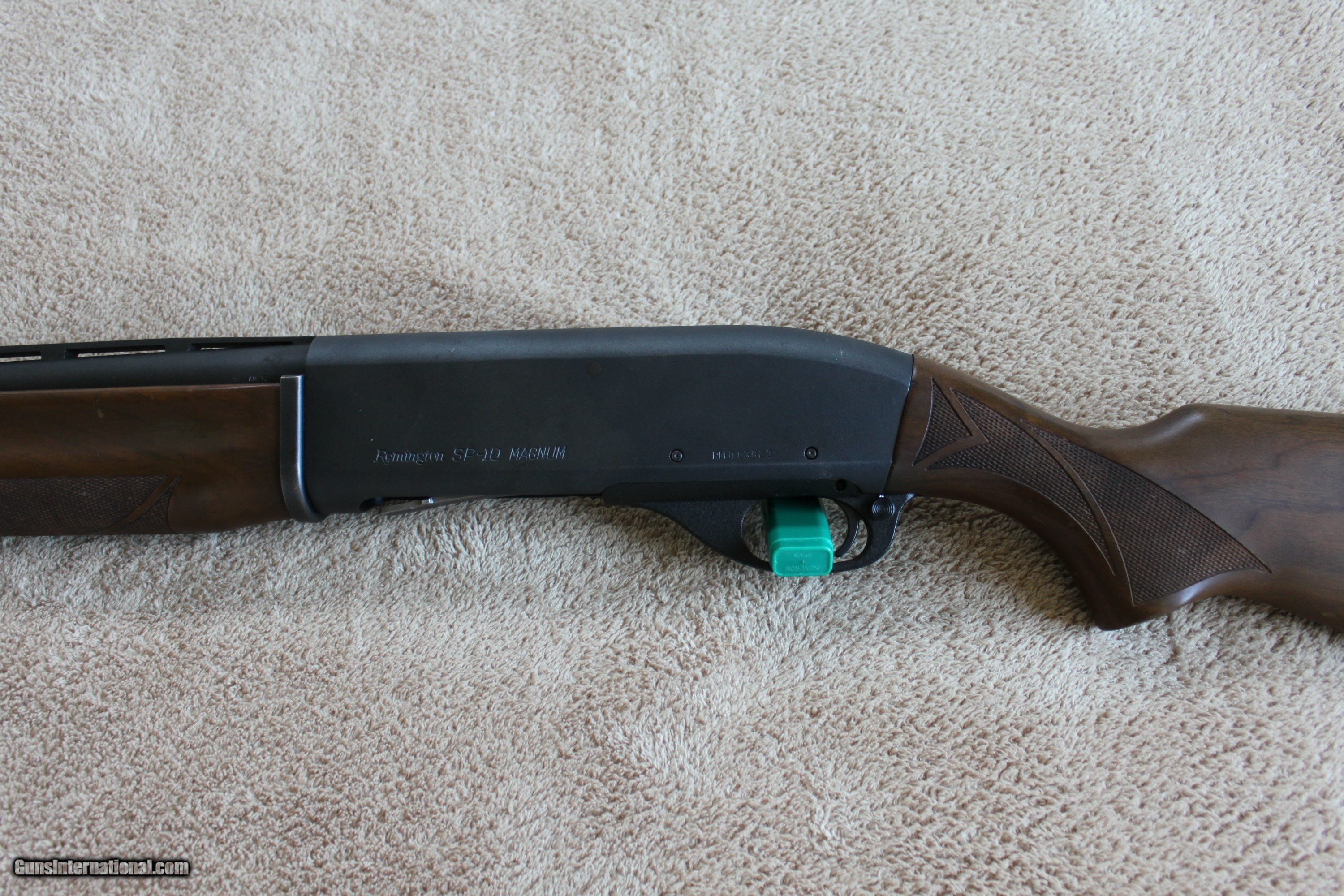 Description: Remington SP-10 10gauge magnum shotgun chambered for 3 1/2 inch shells in very good to excellent condition. 30" barrel. Small blemish in stock at butt pad (see photo) but otherwise only very minor handling marks. Has obviously seen very little use. Comes with one screw-in flush choke (Modified). All metal including bore in excellent condition. One helluva goose gun! Check or money order. Allow up to 10 days for personal checks to clear. Buyer pays shipping. SOLD Shotgun Gauge: 10 Gauge Manufacturer: Remington Model: SP-10 Serial Number: RM013823 Metal Condition: Excellent Wood Condition: Very Good Bore Condition: Excellent |