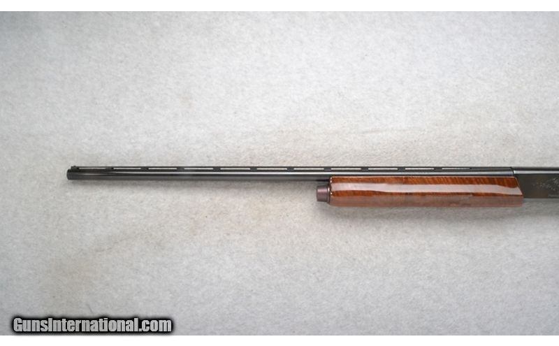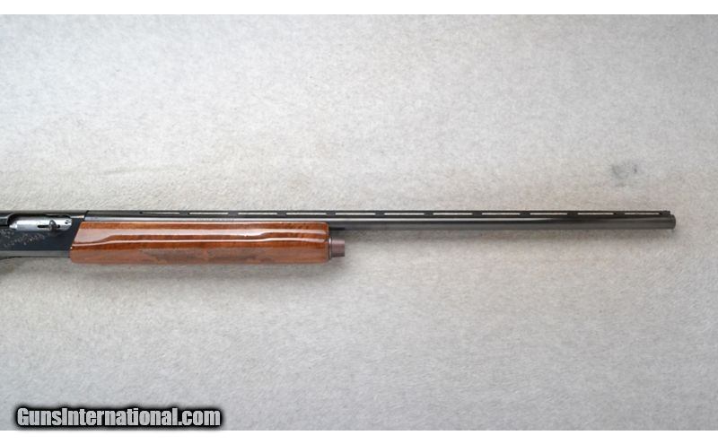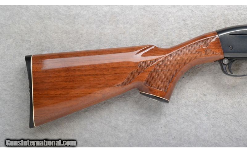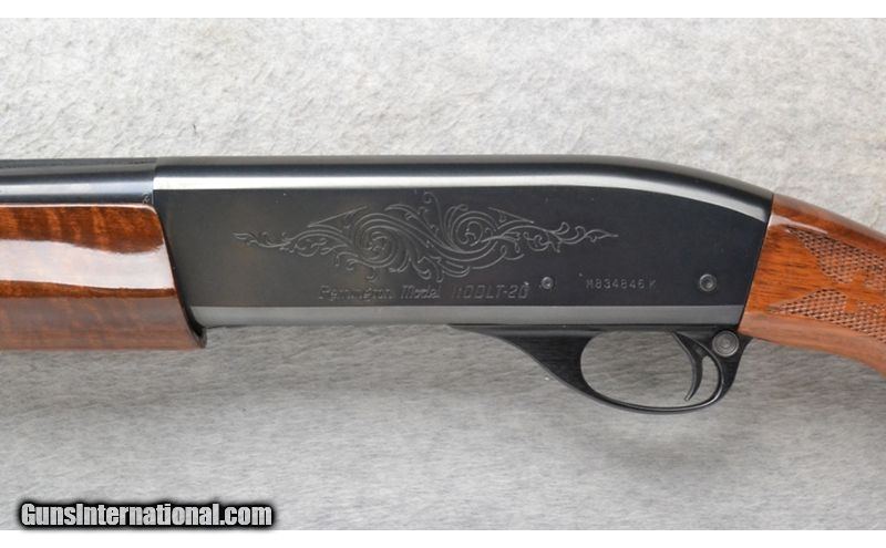 Description: This Remington Model 1100LT-20 is a right hand semi-auto shotgun in 20 Ga. It has a 28 inch barrel with a ventilated rib. A metal front bead sight. With a 2 3/4 inch chamber it has a fixed Modified choke. The butt stock is a checkered grip walnut pistol grip with a black cap. The forearm is a checkered grip walnut with finger grooves. The receiver is lightly engraved. 20 Gauge SOLD Chambers: 2 3/4 inch. Metal Condition: Excellent. A few very minor marks. Wood Condition: Very Good. Some minor handling marks. Bore Condition: Bright and shiny. Barrels: 28 inch barrel with a ventilated rib. Stock Dimensions: LOP 12 1/4 inches. Fore End: Checkered grip walnut with finger grooves. Butt Pad: Grooved black plate. Weight: 7 lb. 0 oz. Sights: Metal front bead. Chokes: Fixed Modified. Item Location: Richfield, WI |