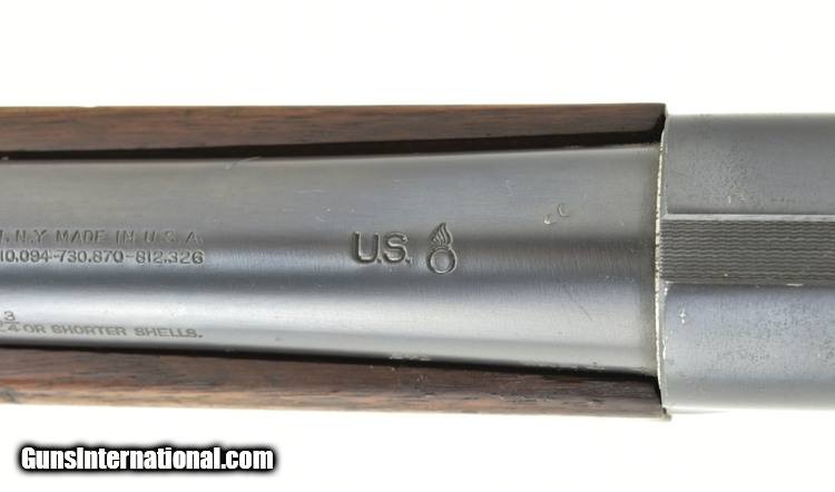 Description: Remington 11 12 Gauge shotgun. U.S. WWII riot gun. Stock has a nice sharp cartouche. Barrel is matching. Very good overall condition.