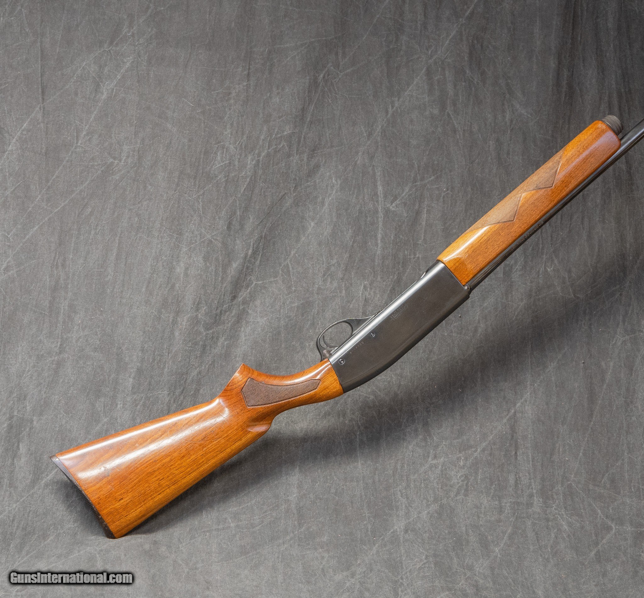 Description: Specifications Maker: REMINGTON Model: 11-48 Gauge/Caliber: 20 GA. Barrel Length: 26" Chambers:2 3/4" Rib Design: PLAIN BARREL Weight: 6LBS 15OZ Bore/Chokes Right/Bottom:. 618 BORE / .021 CONSTRICTION MODIFIED Stock Dimensions Drop At Comb: 1 5/8" Drop At Face: 2" 4 1/2" Drop At Heel: 2 1/2" Cast At Face: 0" 4 1/2" Cast At Heel: 0" Length Of Pull: 14" Pitch: 2 1/2" / 5 DEG Special Features: SEMI-AUTOMATIC INERTIA DRIVEN ACTION BLUED RECEIVER CHECKERED PISTOL GRIP STOCK W/ORIGINAL REMINGTON BUTT PLATE CHECKERED FOREARM 4 SHOT MAGAZINE MADE IN USA CONDITION: GOOD TO VERY GOOD Circa:1951 / SERIAL # 5809609 Number: C9615 SOLD |