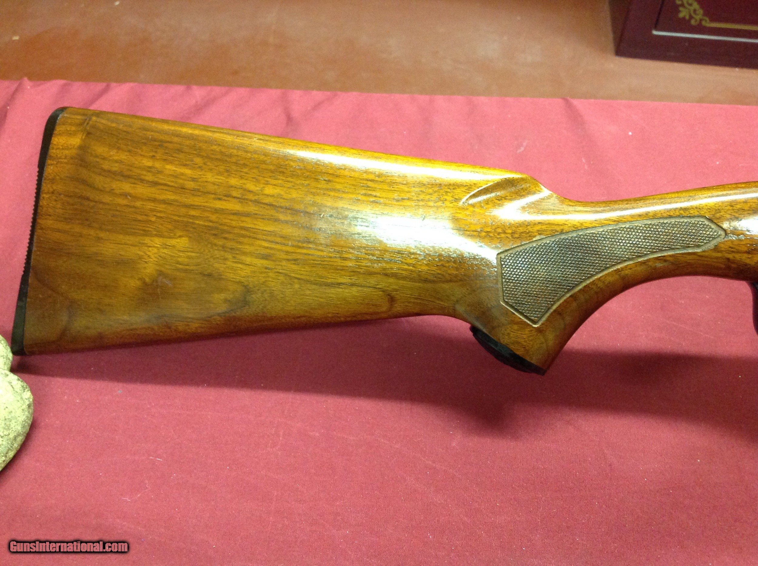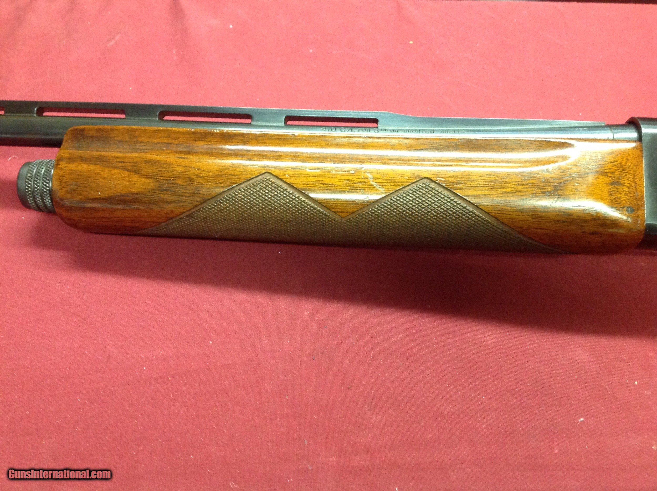 Description: This little gal has it all ! Semi auto .410 gauge, Skeet, Vent Rib, Hand cut checkering and more. She's mechanically perfect. A few very small handling marks none of which are deep enough to touch the wood. All the finish is excellent, no issues any place . The inside of this gun is immaculate. There's no sign of wear and no dirt. Not many of these guns on the market , people that have one love it and are going to keep it ! This is the first new shotgun by Remington after WW2. This little gun is lighter and more streamlined than the older model 11. I wil tell you this, if I was still hunting , this little baby would not be for sale SOLD Manufacturer: Remington Model: 11-48 Serial Number: 4127707 Barrel Length: 26 Condition: Excellent Metal Condition: Excellent Wood Condition: Excellent Bore Condition: Excellent Rib: Vent Manufacture Date: 1964 |