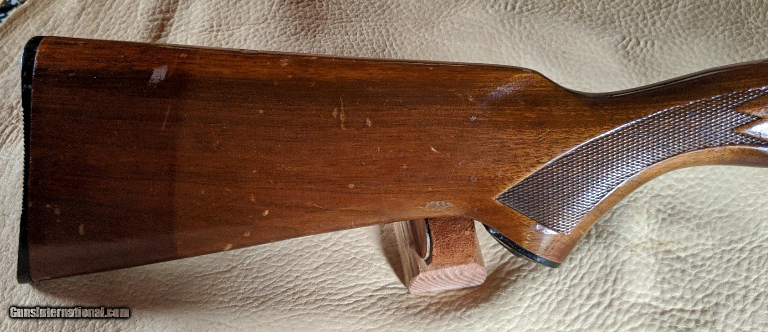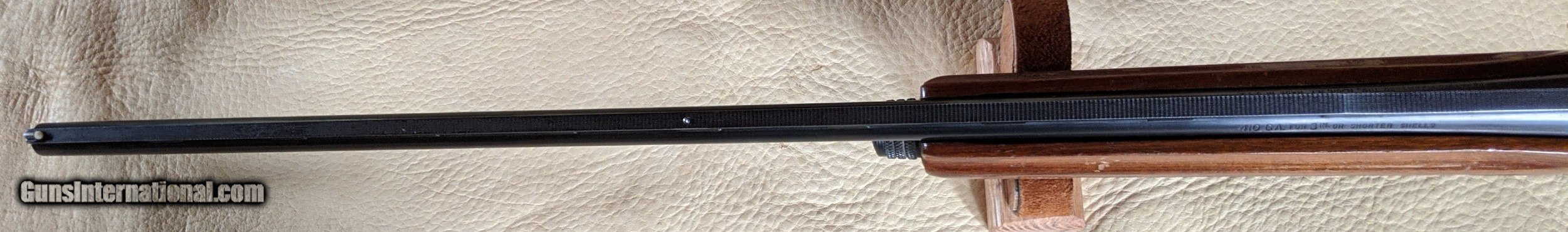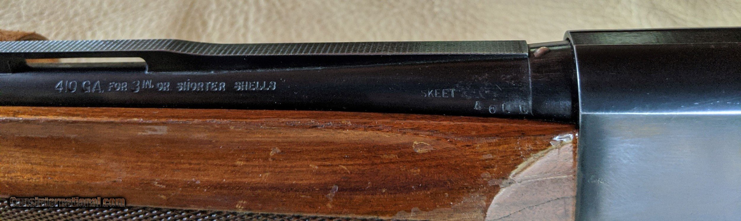 Description: *SOLD*Used Remington 11-48 Skeet in .410 ga. 137/8 LOP. The gun is in very good condition. There is a small crack on both sides of the forearm in the front. The stocks has numerous places where the finish is missing from use, all of it in the finish not the wood. Blue is good probably 94%. The barrel is skeet Vent with Ivory front and steel mid beads. At one time the stock must have had a slip on pad that caused that portion to be alittle darker. Most of this you can see from the pictures. The gun is all orginal including the buttplate and pistol grip cap.Hard to find in a shotgun of this age and model. Please feel free to email or call (no texts) with any questions you may have. We accept USPS money orders for Payment with an FFL. SOLD Curio/Relic: Yes |