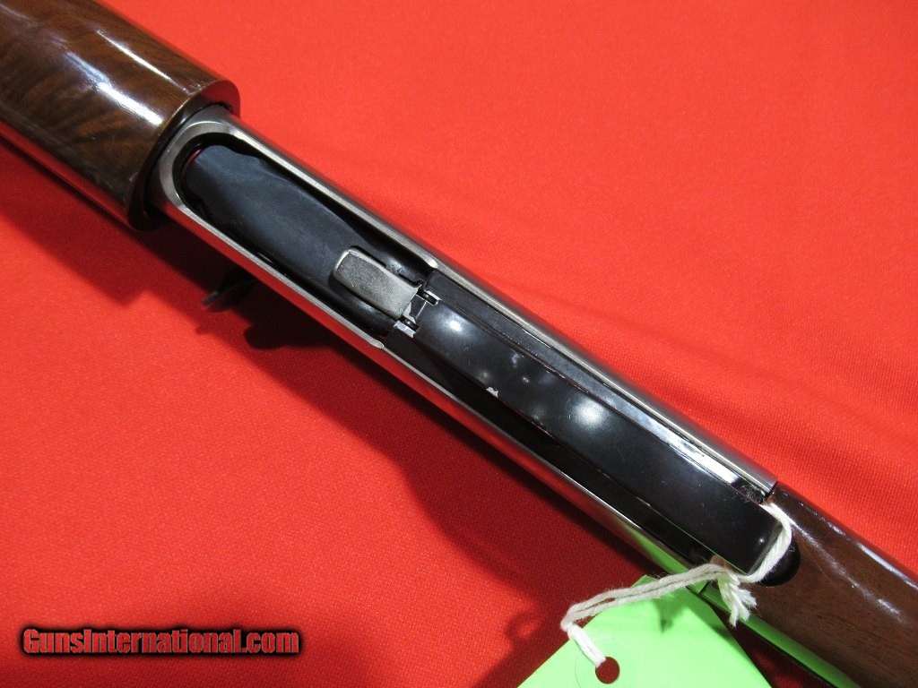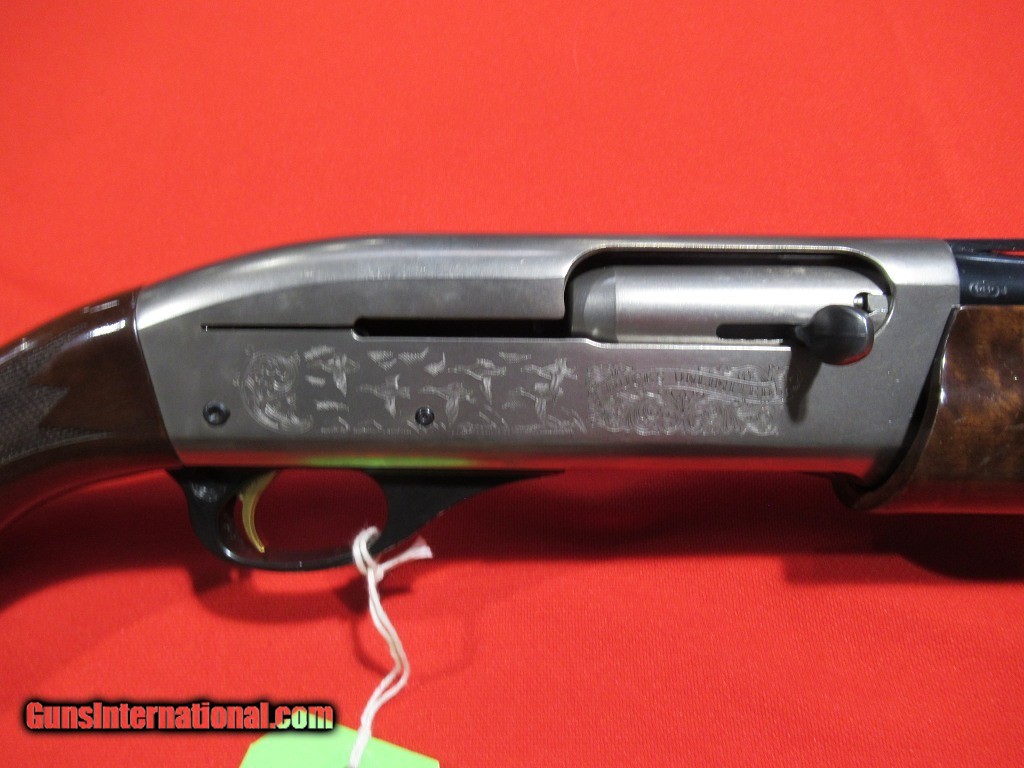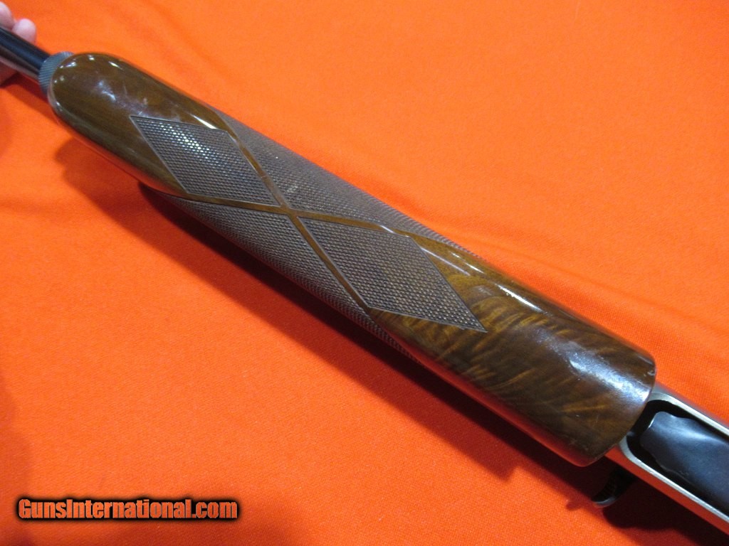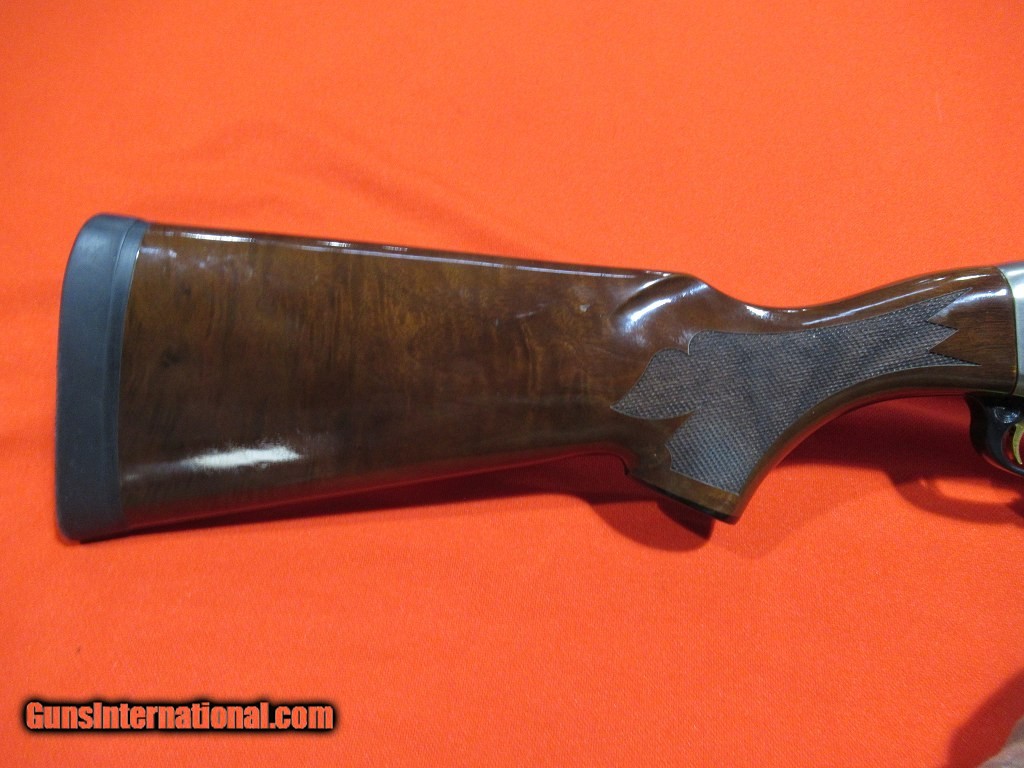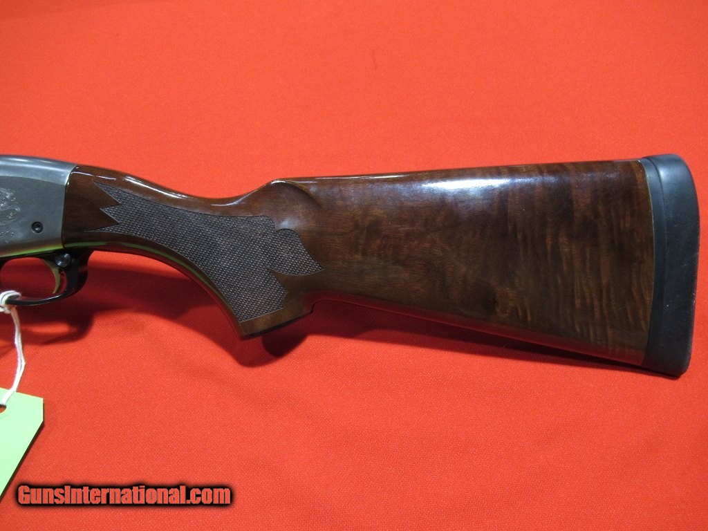 Description: Coin finished receiver with game scene engraving, after-market Kick-eez recoil pad, and an additional 30" remchoked light contour barrel. The factory barrel is 26" light contour threaded for remchokes. This gun also includes a factory camo buttstock and forend. Good condition overall with only light field wear. SOLD |