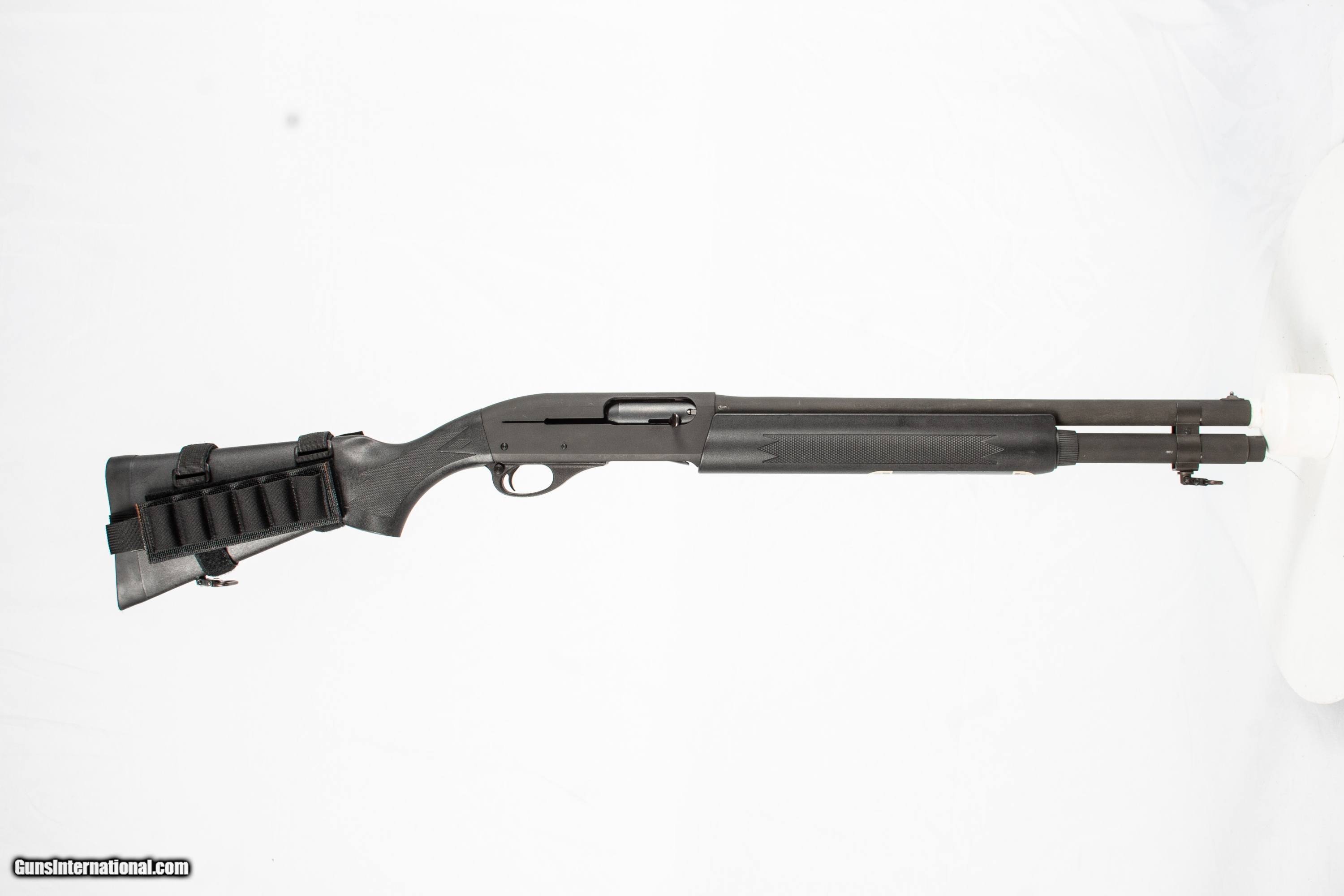 Remington 11-87 Police with an 18 1/4 inch 12 gauge barrel bright & shiny bore 3 inch chamber fixed improved cylinder choke a 14 inch LOP and 2 six round side saddles. This firearm is in very good condition and is covered by Dury's Lifetime Warranty.