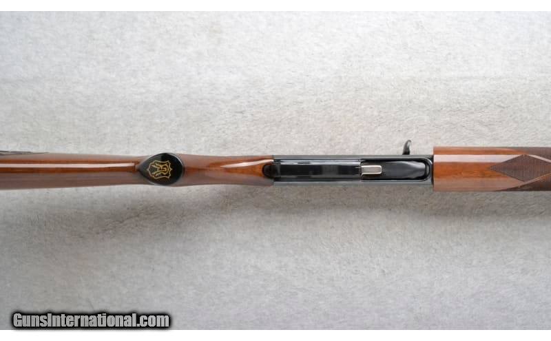 Description: This Remington Model 11-87 Premier is a right hand semi-auto shotgun in 12 Ga. It comes with two barrels and forends. Both barrels have 3 inch chambers. One barrel comes with a Modified choke tube and the other barrel is fully rifled. The butt stock is a checkered grip hardwood pistol grip. One forearm is a checkered grip hardwood with finger grooves and the other foregrip is a checkered grip black polymer with finger grooves. 12 Gauge SOLD Chambers: 3 inch chambers. Metal Condition: Very Good. Receiver has some light freckling. 21 inch barrel has some rust spots. Wood Condition: Very Good with some light handling/use marks. Bore Condition: Bright and shiny. Barrels: 25.5 inch barrel with a ventilated rib. 21 inch barrel. Stock Dimensions: LOP 13 7/8 inches. Fore End: Checkered grip hardwood with finger grooves. Checkered grip black polymer with finger grooves. Butt Pad: Remington brown rubber recoil pad. Weight: 7 lb. 8 oz. Sights: 25.5 inch has a white bead front sight and metal middle bead sight. 21 inch has a raised blade front sight and an adjustable notch middle sight. Chokes: 25.5 inch comes with one Remington Modified choke tube. 21 inch is Fully Rifled. Item Location: Richfield, WI |