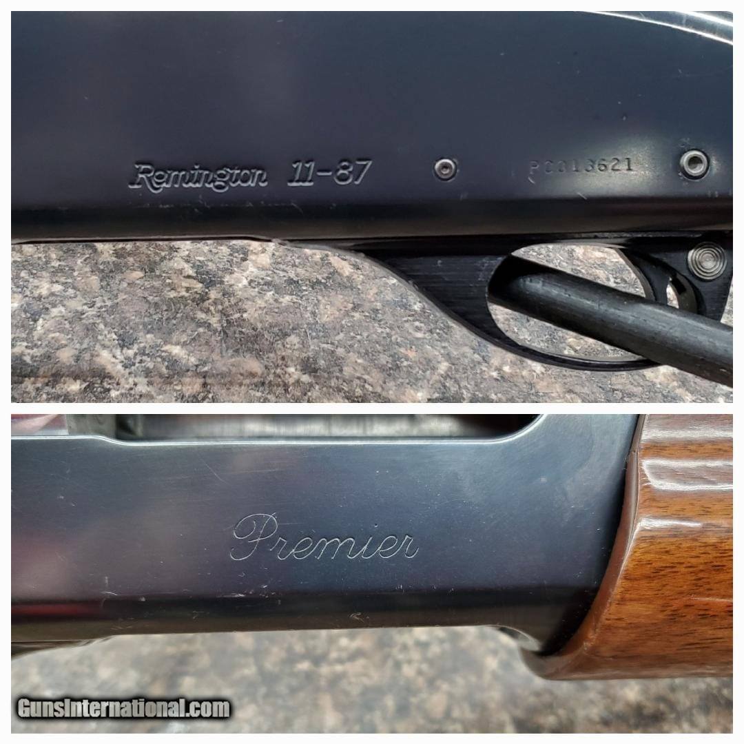 Description: Guns Listing ID: 881849 Remington 11-87 Premier 12 Gauge Semiautomatic Shotgun. 4+1 shell capacity. 28\" barrel. Very clean. a couple of marks on the stock and forearm and scratching below trigger guard below loading port (see in photos) SOLD Manufacturer: REMINGTON Model: 11-87 PREMIER Condition: Used - Non-Certified Barrels: 28 BARREL Gauge Info: 12 GA Finish: WOOD/BLUED |
