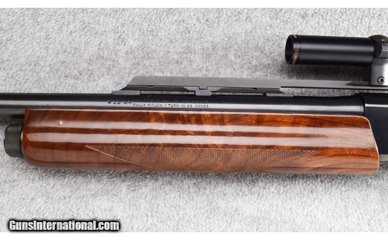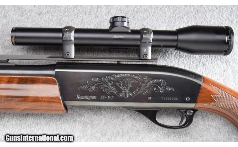 Description: This Remington 11-87 Premier 12GA slug gun remains in excellent overall condition. There is some pitting on the receiver near the loading port. The receiver is also engraved "175th Anniversary 1816-1991". A Bushnell Banner 4x20mm scope is mounted to the fully rifled cantilever barrel scope base. No box!! Great classic slug gun!! 12 Gauge SOLD Chambers: 3 Metal Condition: Very Good Wood Condition: Excellent Bore Condition: Excellent Barrels: 21" Fully Rifled Cantilever Scope Mount Triggers: Factory Stock Dimensions: 14" LOP Fore End: Checkered Semi Pistol Grip Stock - Checkered Walnut Forend Butt Pad: Brown Rubber "Remington" Butt Pad Weight: 9 pounds Sights: Bushnell Banner 4x20mm Scope With Rings Item Location: Wheeling |