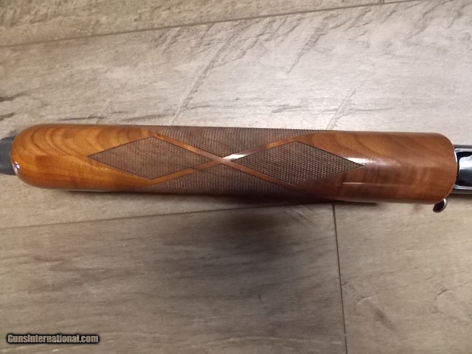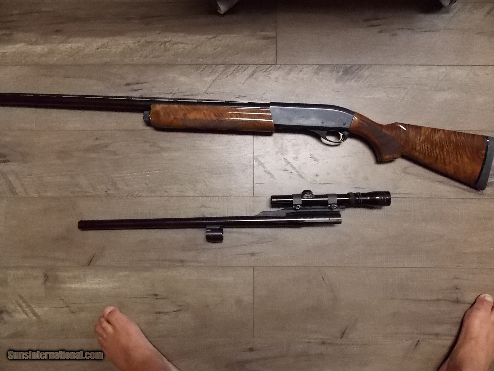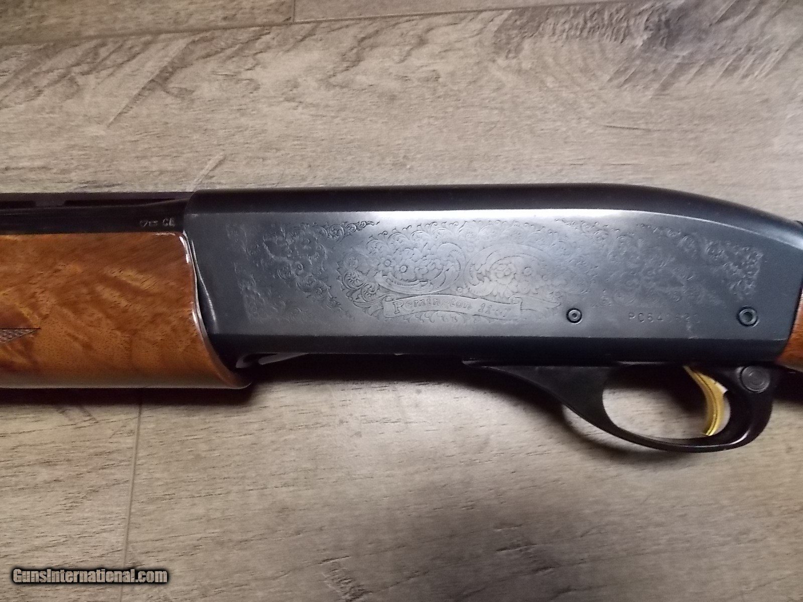 Description: Remington 11-87 Premier grade 12 gauge shotgun. 30" remchoke barrel with 3" chamber, and modified, and improved cyl tubes. Barrel has white bead front, and center bead. Metal shows slight flaking on receiver. Wood is high grade custom shop laminated walnut. They take high grade wood, split stock, and laminate prior to machining and then finish with high polish gloss finish. Gun shows little mechanical wear. Extra barrel (pictured) has been sold SOLD Shotgun Gauge: 12 Gauge Manufacturer: Remington Model: 11-87 Premier Barrel Length: 30/21 Chambers: 3 Condition: good Metal Condition: good Wood Condition: excellent Bore Condition: good Chokes: remchoke |