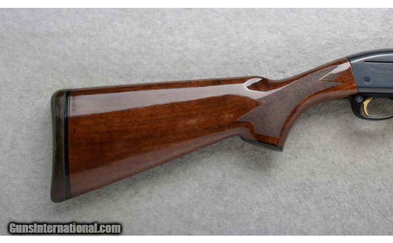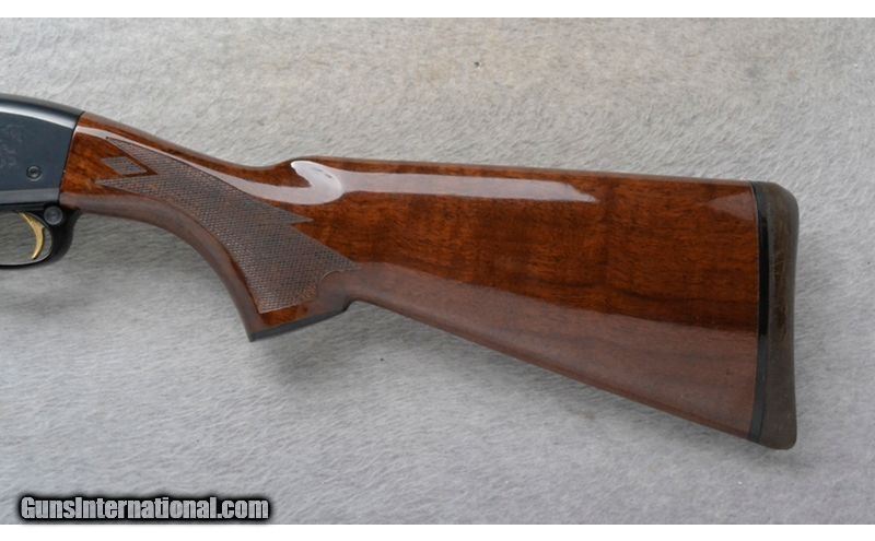 Description: This Remington Model 11-87 Premier is a right hand semi-automatic shotgun in 20 Ga. It has a 28 inch barrel with a ventilated rib. A white bead front sight. Middle bead sight is missing. With a 3 inch chamber it comes with a Remington Mod. choke tube. The butt stock is a checkered grip walnut pistol grip with a black cap. The forearm is a checkered grip walnut with finger grooves. The receiver is engraved. 20 Gauge SOLD Chambers: 3 inch. Metal Condition: Excellent. Wood Condition: Excellent. A couple of very minor handling marks. Bore Condition: "Clean, bright and shiny. Barrels: 28 inch ventilated rib barrel. Stock Dimensions: 13 3/4 inches. Fore End: Checkered grip walnut with finger grooves. Butt Pad: Remington brown rubber recoil pad. Weight: 7 lb. 4 oz. Sights: White front bead. Middle bead is missing. Chokes: Remington Mod. choke tube. Item Location: Richfield, WI |