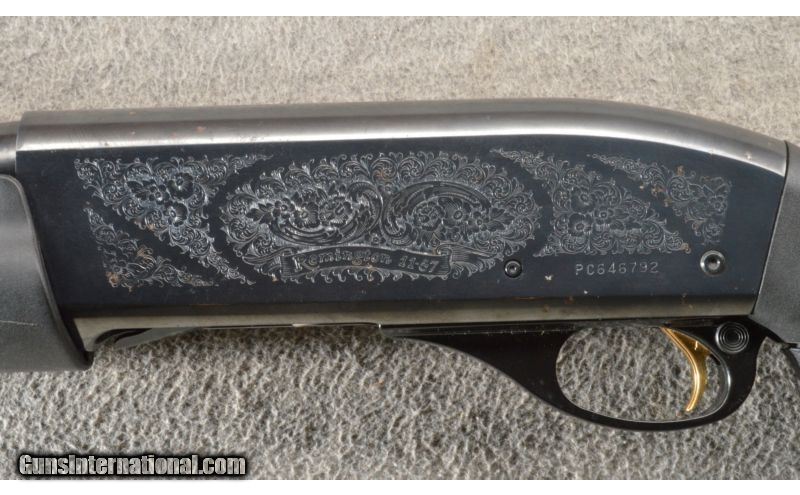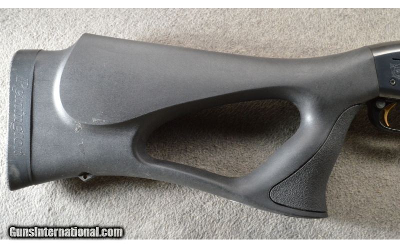 Description: This is a nice used Remington 11-87 Premier 12 gauge slug gun. The shotgun has a pistol grip thumbhole butt stock and black synthetic forearm with finger grooves. The receiver is nicely engraved and the barrel is 21 inch with rifle sights and a rifled choke. This nice shotgun is ready for the fall hunting season. SOLD Caliber Info: 12 Gauge. Chambers: 2 3/4 and 3 inch semi-auto. Metal Condition: Very good with a few spots on the receiver. Wood Condition: The stock is excellent. Bore Condition: Like new. Barrels: 21 inch blue with sights and a rifled choke. Triggers: Single gold color. Stock: Black synthetic with a pistol grip thumbhole and a matching forearm with finger grooves. Stock Dimensions: 13 1/2 inch LOP. Fore End: Matching black synthetic with finger grooves. Butt Pad: Remington soft black rubber Supercell butt pad. Weight: 7 Lbs 11 Oz. Sights: Adjustable rifle sights. Chokes: Screw in rifled choke. Item Location: Owatonna, MN |