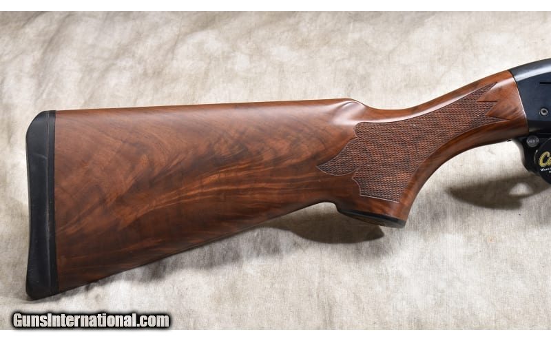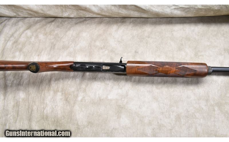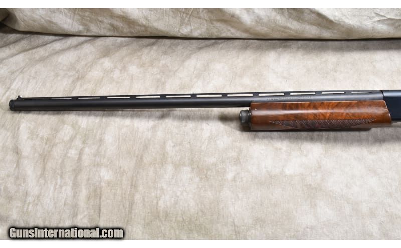Description: Very nice sporting clays shotgun with extended chokes, vent rib, 28 inch barrel, and figured stock. Dates to the 1990s. 12 Gauge SOLD Chambers: "4+1 capacity (unplugged), 2-3/4 inch Metal Condition: Very good. Wood Condition: Very good. Bore Condition: Shiny and bright. Barrels: 28-inch Triggers: Factory trigger. Stock Dimensions: 14-inch LOP. Fore End: Well-matched walnut with lots of understated figure. Butt Pad: Rubber pad. Weight: 8 LB Sights: Ventilated rib with white and silver beads. Chokes: Screw-in extended chokes. Item Location: Rogers |