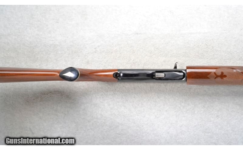 Description: This Remington Model 1100 is a right hand semi-auto shotgun in 12 Ga. It has a 30 inch ventilated rib barrel. A metal bead front sight. With a 2 3/4 inch chamber it has a fixed full choke. The butt stock is a checkered grip walnut pistol grip with a black cap. The forearm is a checkered grip walnut with finger grooves. The receiver is lightly engraved. 12 Gauge SOLD Chambers: 2 3/4 inch. Metal Condition: Very Good. A few minor handling marks. Wood Condition: Very Good. A few minor handling marks. Bore Condition: Shiny. Barrels: 30 inch barrel with a ventilated rib. Stock Dimensions: LOP 14 inches. Fore End: Checkered grip walnut with finger grooves. Butt Pad: Remington grooved black plate. Weight: 8 lb. 4 oz. Sights: Metal front bead. Chokes: Fixed full. Item Location: Richfield, WI |