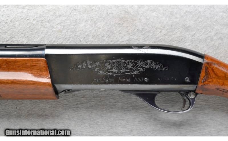 Description: This Remington Model 1100 is a right hand semi-auto shotgun in 12 Ga. It has a 25.5 inch barrel with a ventilated rib. A metal bead front sight. With a 2 3/4 inch chamber it has a fixed Imp. Cyl. choke. The butt stock is a checkered grip walnut pistol grip with a black cap. The forearm is a checkered grip walnut with finger grooves. 12 Gauge SOLD Chambers: 2 3/4 inch. Metal Condition: Fair. Has heavier handling/use marks. Barrel at the bore has a heavier dent in it. Wood Condition: Fair. Has many handling marks and surface finish wear. Bore Condition: Needs a good cleaning. Barrels: 25.5 inch barrel with a ventilated rib. Stock Dimensions: LOP 14 1/2 inches. Fore End: Checkered grip walnut with finger grooves. Butt Pad: Pachmayr White Line rubber recoil pad. Weight: 7 Lb. 14 Oz. Sights: Metal front bead. Chokes: Fixed IMP CYL choke. Item Location: Richfield, WI |