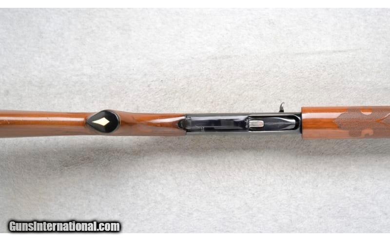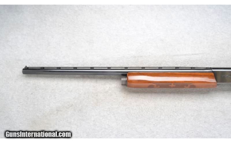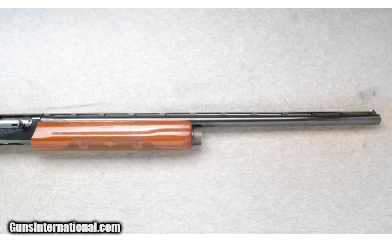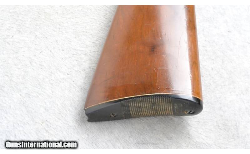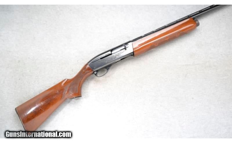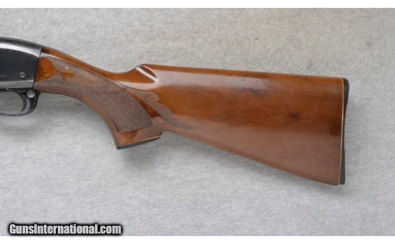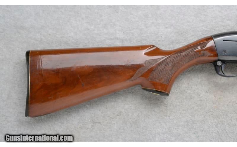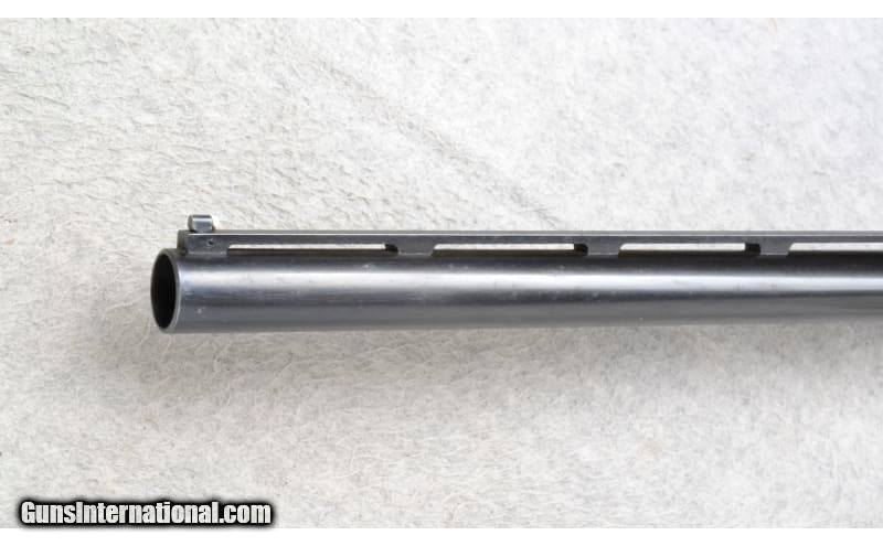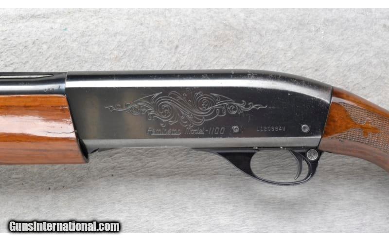 Description: This Remington Model 1100 is a right hand semi-auto shotgun in 12 Ga. It has a 25.5 inch ventilated rib barrel. A white bead front sight and a metal middle bead sight. With 2 3/4 inch chamber it has a fixed Imp. Cyl. Choke. The butt stock is a checkered grip walnut pistol grip with a black cap. The forearm is a checkered grip walnut with finger grooves. The receiver is lightly engraved. 12 Gauge SOLD Chambers: 2 3/4 inch. Metal Condition: Fair. Has many handling/use marks. Wood Condition: Fair. Has many handling/use marks. Has a small piece of wood missing bottom of the butt stock and varnish drip spots. Bore Condition: Shiny. Barrels: 25.5 inch barrel with a ventilated rib. Stock Dimensions: LOP 14 inch. Fore End: Checkered grip walnut with finger grooves. Butt Pad: Remington grooved black plate. Weight: 7 Lb. 14 Oz. Sights: White bead front. Metal middle bead. Chokes: Fixed Imp. Cyl. Item Location: Richfield, WI |