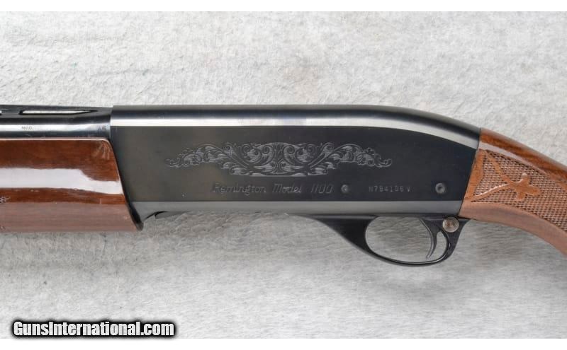 Description: This Remington Model 1100 is a right hand semi-auto shotgun in 12 Ga. It has a 28 inch barrel with a ventilated rib. A metal bead front sight. With a 2 3/4 inch chamber it comes with a fixed Modified choke. The butt stock is a checkered grip walnut pistol grip with a black cap. The forearm is a checkered grip walnut with finger grooves. The receiver is nicely engraved. 12 Gauge SOLD Chambers: 2 3/4 inch. Metal Condition: Good. Some very minor use marks. Wood Condition: Very Good. Barrels: 28 inch barrel with a ventilated rib. Stock Dimensions: LOP 14 inches. Fore End: Checkered grip walnut with finger grooves. Butt Pad: Remington grooved black plate. Weight: 8 lb. 2 oz. Sights: Metal bead front. Chokes: Fixed Modified. Item Location: Richfield, WI |
