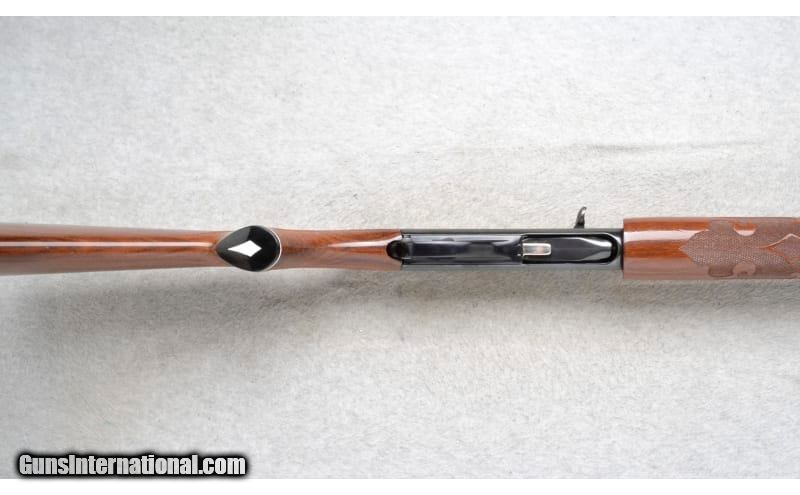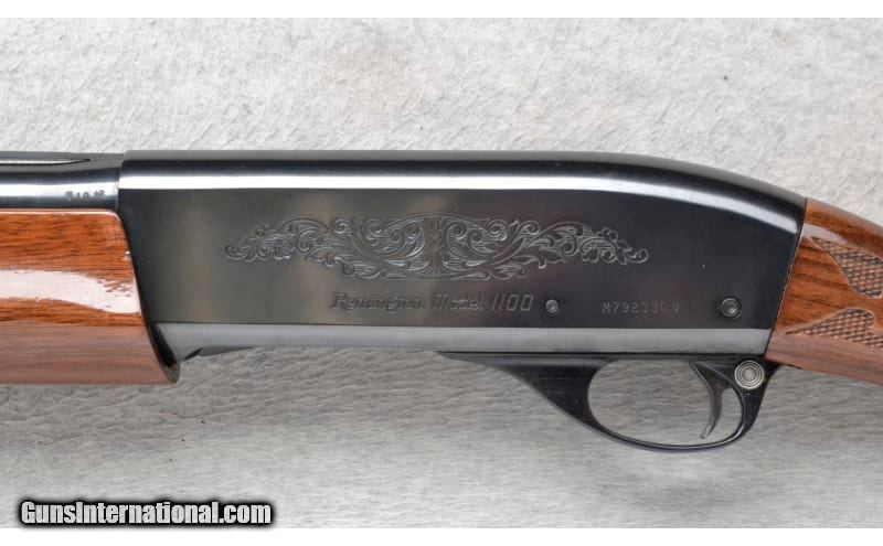 Description: This Remington Model 1100 is a right hand semi-auto shotgun in 12 Ga. It comes with two barrels. It has a 2 3/4 inch chamber. The butt stock is a checkered grip walnut pistol grip with a black cap. The forearm is a checkered grip walnut with finger grooves. 12 Gauge SOLD Chambers: 2 3/4 inch. Metal Condition: Very Good. A couple of minor handling marks. Wood Condition: Very Good. A few minor handling marks. Bore Condition: Shiny. Barrels: 28 inch barrel with a ventilated rib. Slug barrel. Stock Dimensions: LOP 14 inches. Fore End: Checkered grip walnut with finger grooves. Butt Pad: Grooved black plate. Weight: 7 Lb. 14 Oz. Sights: 28 inch has a metal bead front. Chokes: 28 inch barrel has a fixed Modified choke. Item Location: Richfield, WI |