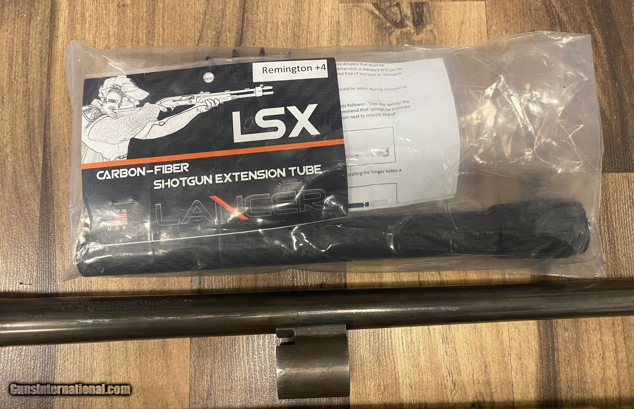 Description: Guns Listing ID: 1034429 Includes 18\" barrel PLUS The Lancer LSX Carbon Fiber Extension Tube The Model 1100 bleeds off gases to operate the action through ports in the barrel near the fore end. The gasses then drive a steel action sleeve that fits around the magazine tube and connects to the bolt carrier to the rear, ejecting the spent shell. A fresh shell is released from the magazine, which trips the carrier release, and the action spring in the stock pushes the bolt forward, picking up the fresh shell and loading it into the chamber. SOLD Manufacturer: REMINGTON Model: 1100 Condition: Used - Non-Certified Barrels: 28 BARREL Gauge Info: 12 GA Finish: BLACK |