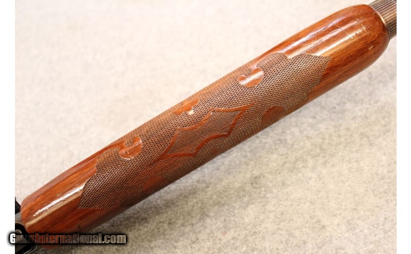 Description: This Remington 1100 chambered in 12GA features, blue finish, engraved receiver/bolt, vented ribbed barrel, steal bead mid-sight, white bead front sight, rubber recoil pad, and hardwood checkered furniture. This 1100 is excellent shape besides some marring on the left side receiver. 12 Gauge SOLD Metal Condition: Great Wood Condition: Excellent Bore Condition: Bright Barrels: 25.5 Weight: 7.4 lbs. Item Location: Hoffman Estates, IL |