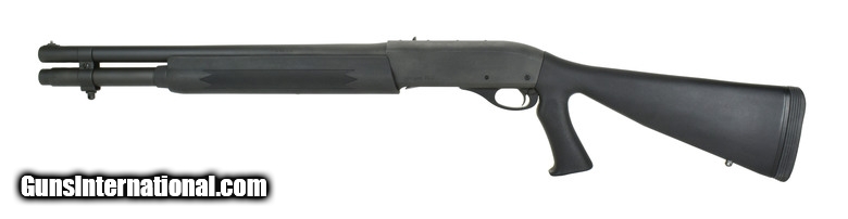 Description: Remington 1100 12 Gauge shotgun. Tactical semi-auto riot gun with 18” barrel and pistol grip stock. Excellent condition with box.