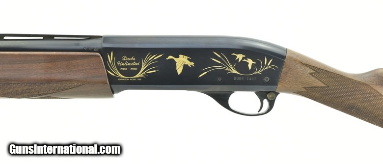 Description: Remington 1100 12 Gauge shotgun. Ducks Unlimited 1985 Special Edition. Has gold foil decorations and straight stock of deluxe walnut.