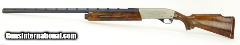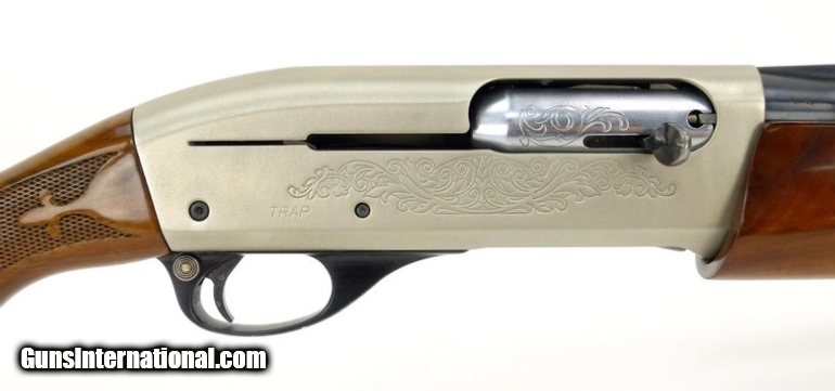 Remington 1100 12 Gauge shotgun. Deluxe trap gun with 30” full choke barrel, satin nickel receiver, and fancy walnut. LOP is 14â??” over a recoil pad. Overall near excellent condition with light marks in the wood.