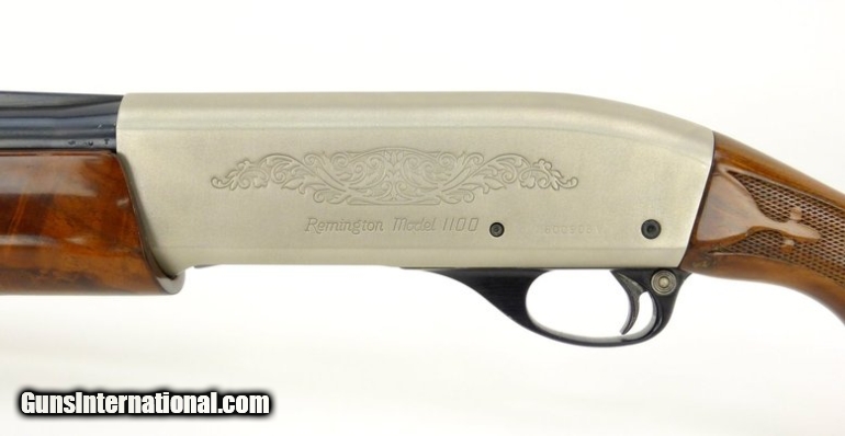 Remington 1100 12 Gauge shotgun. Deluxe trap gun with 30” full choke barrel, satin nickel receiver, and fancy walnut. LOP is 14â??” over a recoil pad. Overall near excellent condition with light marks in the wood.