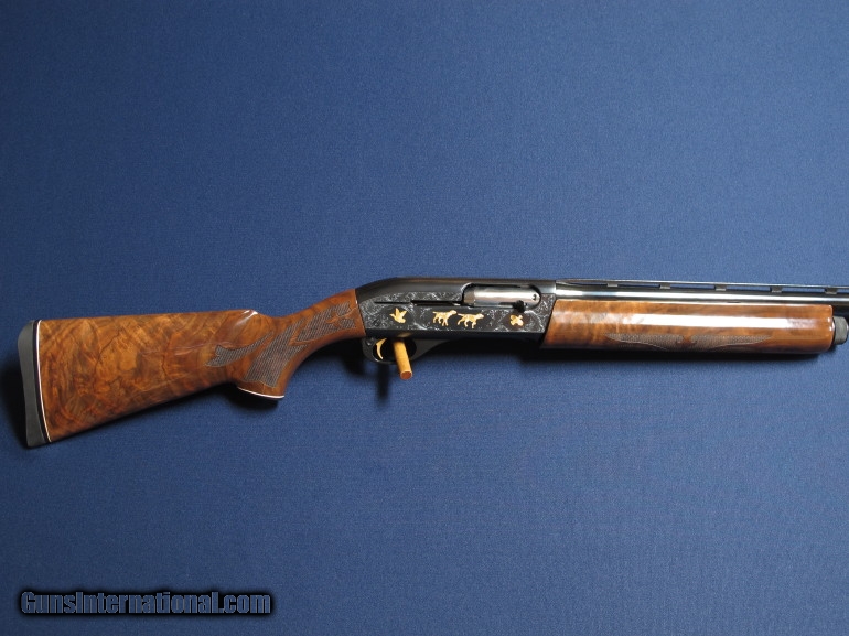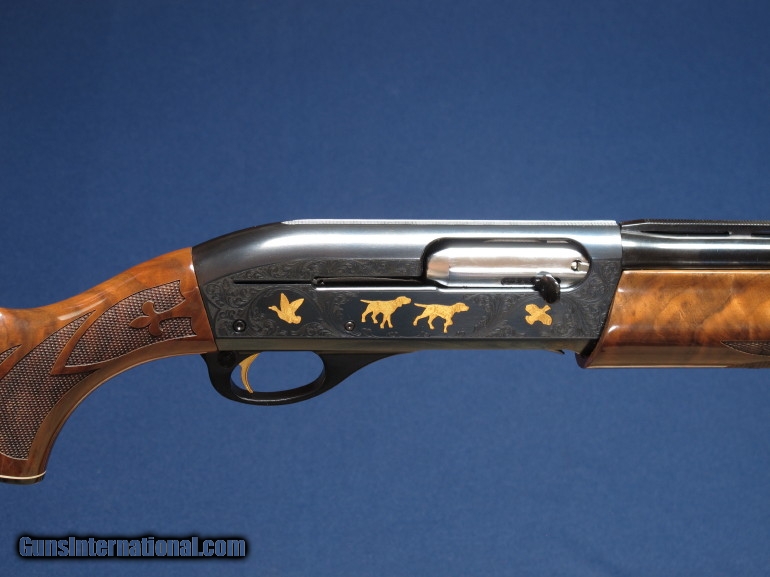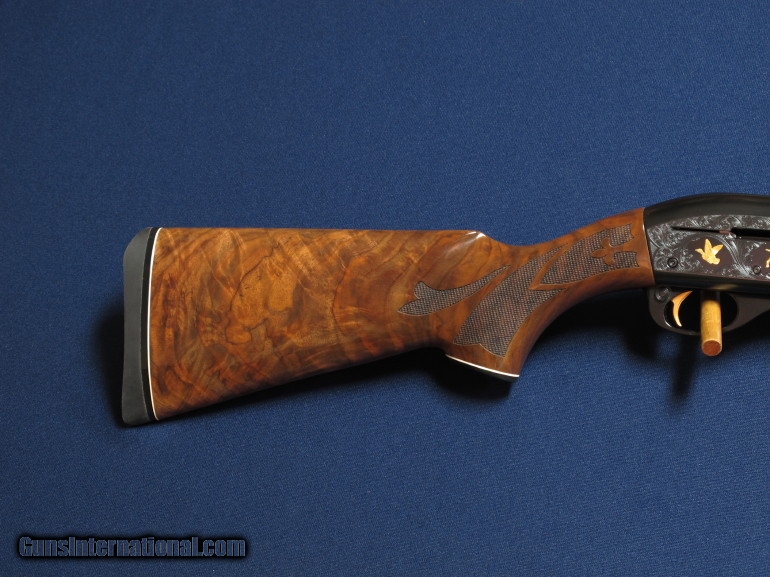Description: Remington 1100 12ga 50th Anniversary. 28in barrel. Rem chokes. Looks unfired in case and box. With paperwork. Gold inlays with beautiful wood. SOLD |