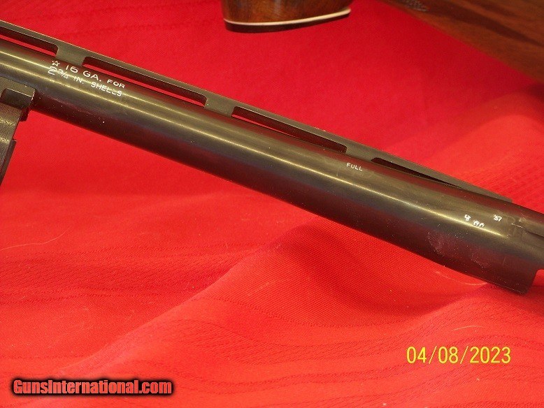 Description: =====Sold ==== is a Remington 1100 16ga. Shotgun. It has a 28", Vent Rib Barrel Choked Full ( Fixed ) 2 3/4" Chomber comes with magazine plug. The Hi-Gloss Stock and Forearm are in Very Good Condition, No Scratches, Dings or Chipped..The Blueing on the Receiver and Barrel shows No Rust or Freckles. The Magazine tube and Bolt Fasce shows little wear hardly any blueing wore off from use. Forearm is a proper 16ga. barrel channel.. The Lop is 14" ( Not Cut ) and weighs 7#'s 15oz .Serial # M6xxxx1W Thanks for looking----chalk used to hilight barrel markings---cleaned after pictures. SOLD Shotgun Gauge: 16 Gauge Manufacturer: Remington Model: 1100 Serial Number: M 6xxxx1 W Barrel Length: 28 Condition: Excellent Metal Condition: Excellent Wood Condition: Excellent Bore Condition: Bright & Shiny Action: Semi-Auto Stock: Walnut Fore End: Walnut Butt Pad: Hard Plastic--Original LOP: 14 Chokes: Full---fixed Item Location: Colorado |