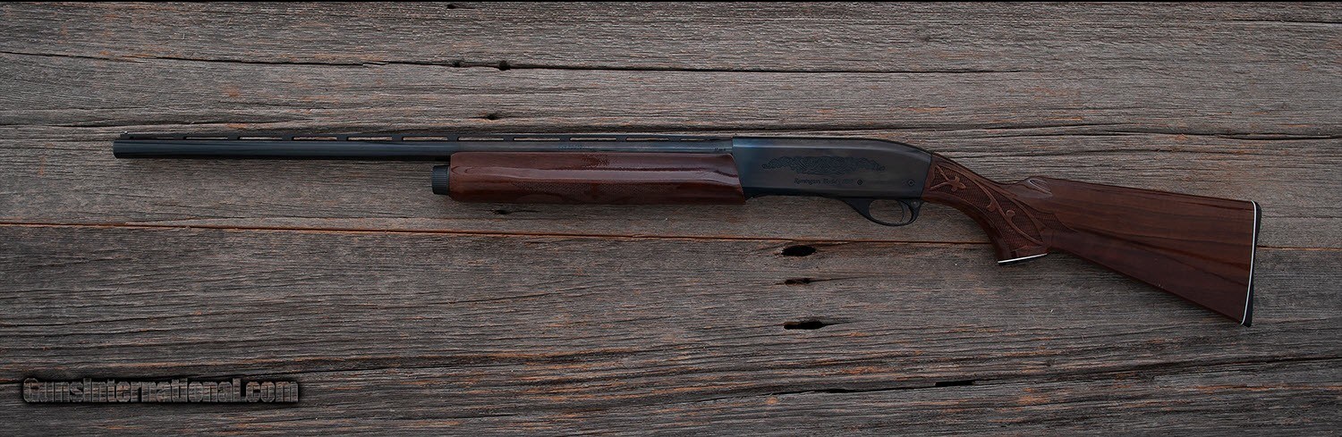 Description: Remington - 1100 - 2 Bbl Set - 12 ga - Item Number: REMN842021V Shotgun type: Semi-Auto Action: Semi-Auto Ejectors: Yes Trigger: Single Grip: Pistol Grip Forend: Checkered Lop: 13 7/8 " Pad thickness: 0.25 " Type of butt: Factory Drop comb: 1 1/2 " Drop heel: 2 1/2 " Cast amount: 1/8 " Cast: Off Weight: 8 lbs, 4 oz Manufactured in: USA Manufacture Year:Finish: Blue Overall condition: Very Good Stock condition: Very Good Metal condition: Very Good Stock: Original finish Metal: Original finish Type of Case: none Extra barrels: 0 Barrel info: Gauge: 12 ga Chamber: 2 3/4 " Length: 26 " Chokes: IC Rib type: Ventilated Gauge: 12 ga Chamber: 2 3/4 " Length: 34 " Chokes: Full Rib type: Ventilated Comments : Gun is in very good condition with some light handling marks. SG-125 SOLD |