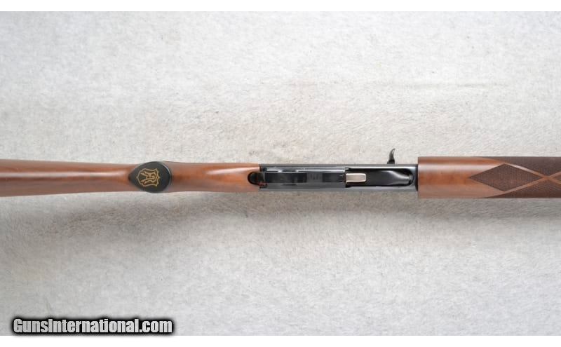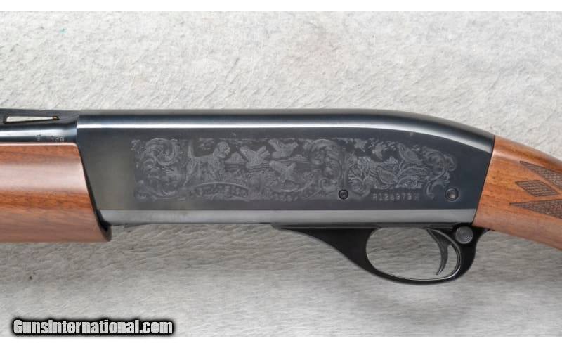 Description: This Remington Model 1100 is a right hand semi-auto shotgun in .410 Bore. It has a 25 inch barrel with a ventilated rib. A white bead front sight and a metal bead middle sight. With a 3 inch chamber it has a fixed Modified choke. The butt stock is a checkered grip hardwood with a black cap. The forearm is a checkered grip hardwood with finger grooves. .410 Bore SOLD Chambers: 3 inch. Metal Condition: Very Good. Wood Condition: Good. Has some light handling marks. Bore Condition: Shiny. Barrels: 25 inch barrel with a ventilated rib. Stock Dimensions: LOP 14 inches. Fore End: Checkered grip hardwood with finger grooves. Butt Pad: Remington checkered black plate. Weight: 7 lb. 8 oz. Sights: White bead front. Metal middle bead. Chokes: Fixed Modified. Item Location: Richfield, WI |