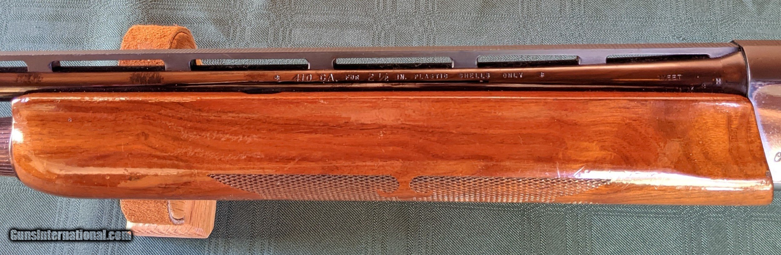 Description: Remington 1100 Skeet .410 bore, 25"bbl, LOP 141/4. VR w/center bead and white front bead. This gun was part of a Matched Pair Remington made in '69 & '70. This gun is used but in Excellent+ condition. It has had a Pachmayr White Line pad added. Super nice little small gauge skeet gun. Please feel free to call or email (notexts) with any questions you may have. We accept USPS Money Orders, Credit Cards3%, Bank Checks or your personal check for payment. All checks take 10 days to clear our bank. We ship USPS Priority Insured to your FFL Dealer. NO CALIF. SALES. Shipping&Insurance are not included in the price. SOLD |