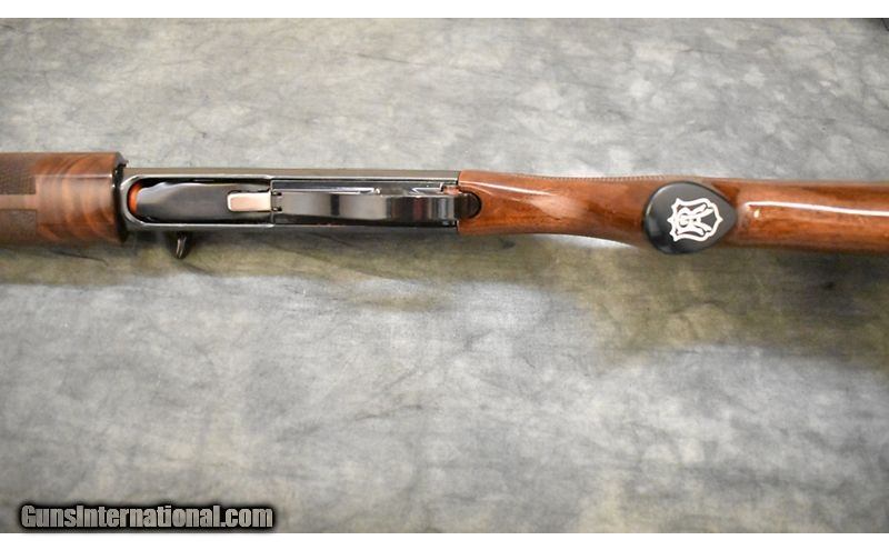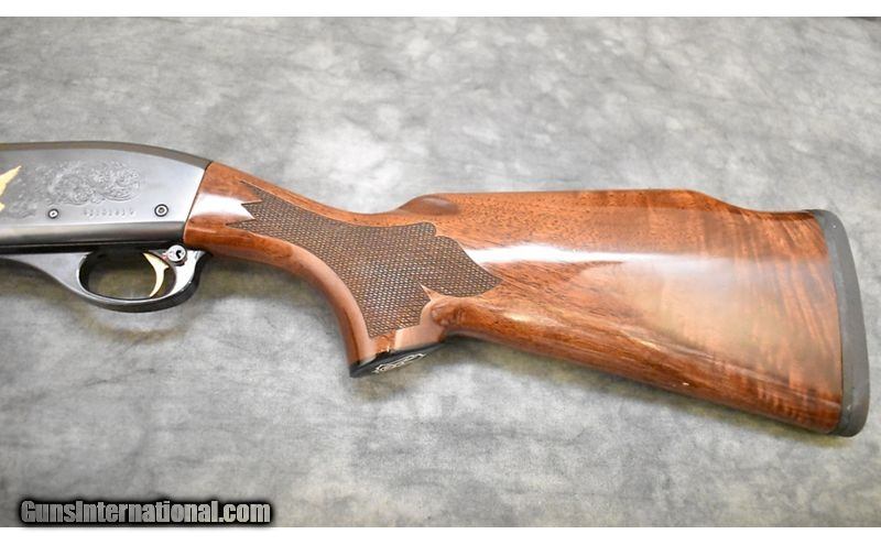 Description: The Model 1100 Classic Trap features a semi-fancy, B grade American walnut stock with handsome hi-gloss finish and cut-checkering. A non-glare, bead blasted top and bottom radius compliments the polished satin finish on the receiver sides and the barrel has a high polish blued finish. Designed to provide proper fit, the competition-style stock has a 1 7/16-inch drop at the comb, 2-inch drop at the heel and 14 1/2-inch length of pull. This soft-recoiling, 12-gauge autoloader has been optimized to handle 2 3/4-inch target and light field loads. Ivory front bead and steel mid-bead sights provide for ease of target acquisition and improved second shot follow-up. 12 Gauge SOLD Metal Condition: Excellent Wood Condition: "Semi-fancy, solid American walnut stocks and fore-ends Bore Condition: Bright Barrels: 30 Triggers: Gold triggers and gold embellishments on receiver Stock Dimensions: 14 1/2-inch length of pull Butt Pad: Kick eez rubber Weight: 7 lbs Sights: Twin target-style bead sights Item Location: Ashland, VA |
