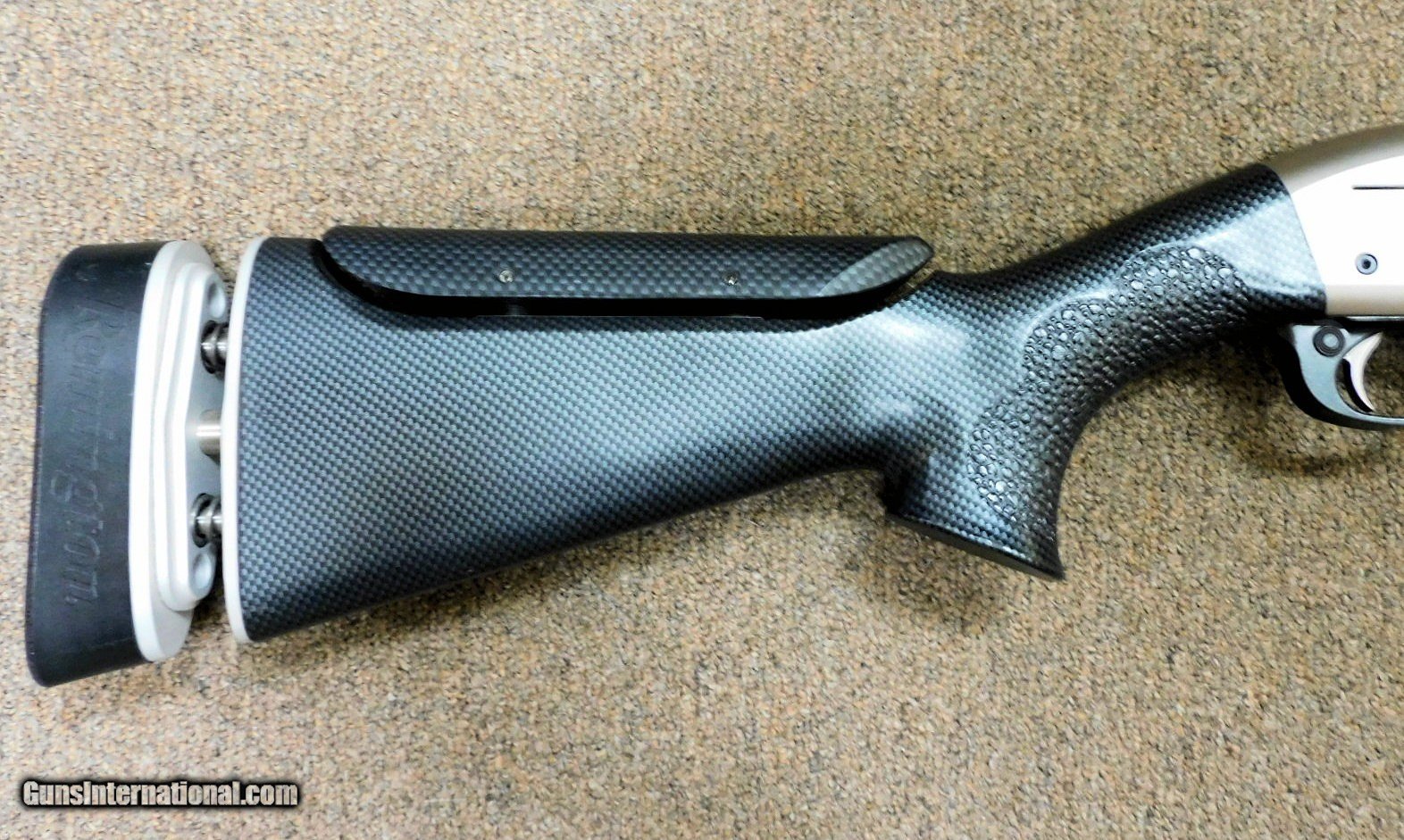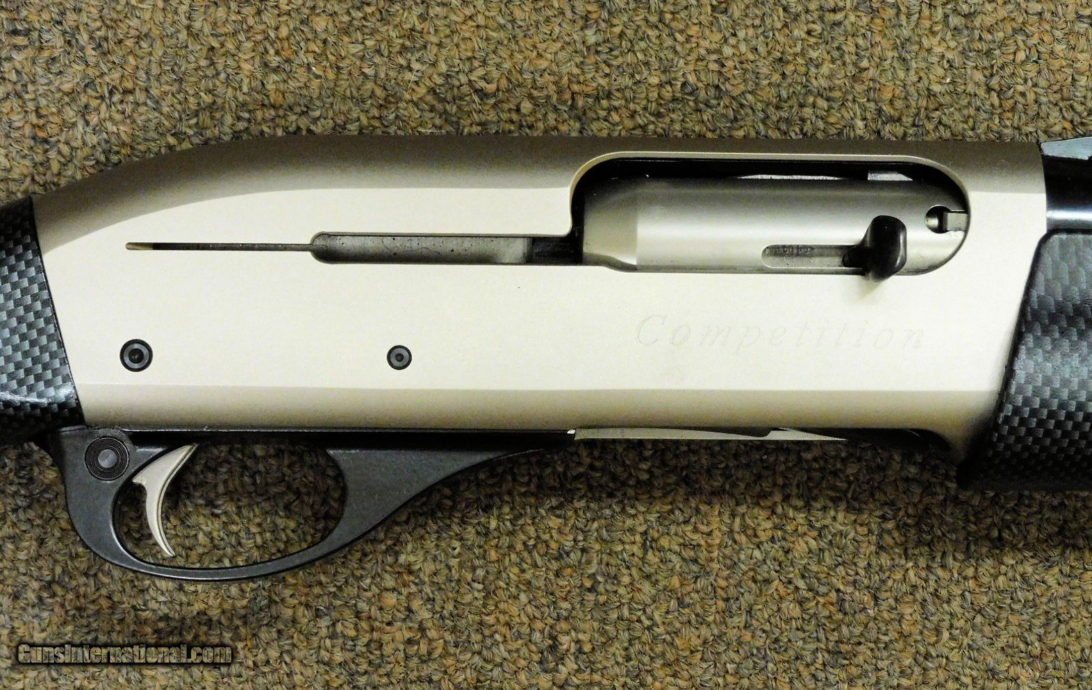 Description: Immaculate Remington 1100 Competition 12 GA, 30" vented rib Pro Bore bbl, bright shiny smooth bore, silver mid bead ivory colored front bead, receiver has nickel finish, textured synthetic grip stock - checkered forearm, carbon graphite finish, LOP - 14 5/8", adjustable comb, Ken Rucker's Auto-Buster recoil absorbing system, and a black Remington recoil pad. Includes 5 Briley Remington ProBore extended choke tubes (FULL - LT MOD - MOD - IMP CYL - SKEET), choke tube wrench, and parts for the Auto-Buster system. Add 3% for Credit Card Shipping $40.00 in the 48 contiguous United States From the manufacturer: "A SWEET-SHOOTING COMPETITOR, 40 YEARS IN THE MAKING. Our Model 1100 Competition Synthetic is super-tuned for the competitive scene. By overboring the 30" barrel and lengthening the forcing cones, we improved shot-to-shot pattern consistency and made what was one of the softest-recoiling actions in the world even easier on your shoulder. The receiver and all internal parts feature a nickel-Teflon® finish for the smoothest, most reliable cycling ever. It's optimized for 2 3/4" target loads and light field loads, and the barrel has a 10mm target-style rib. All these, plus a host of other upgrades, transform an already legendary design into an unstoppable force at the range. Twin target-style bead sights Nickel finish on receiver Nickel coated internals Adjustable comb and cast adjustment options Includes full set of five Briley (Target) ProBore Choke Tubes: skeet, improved cylinder, light modified, modified and full Recoil reducing stock SOLD |