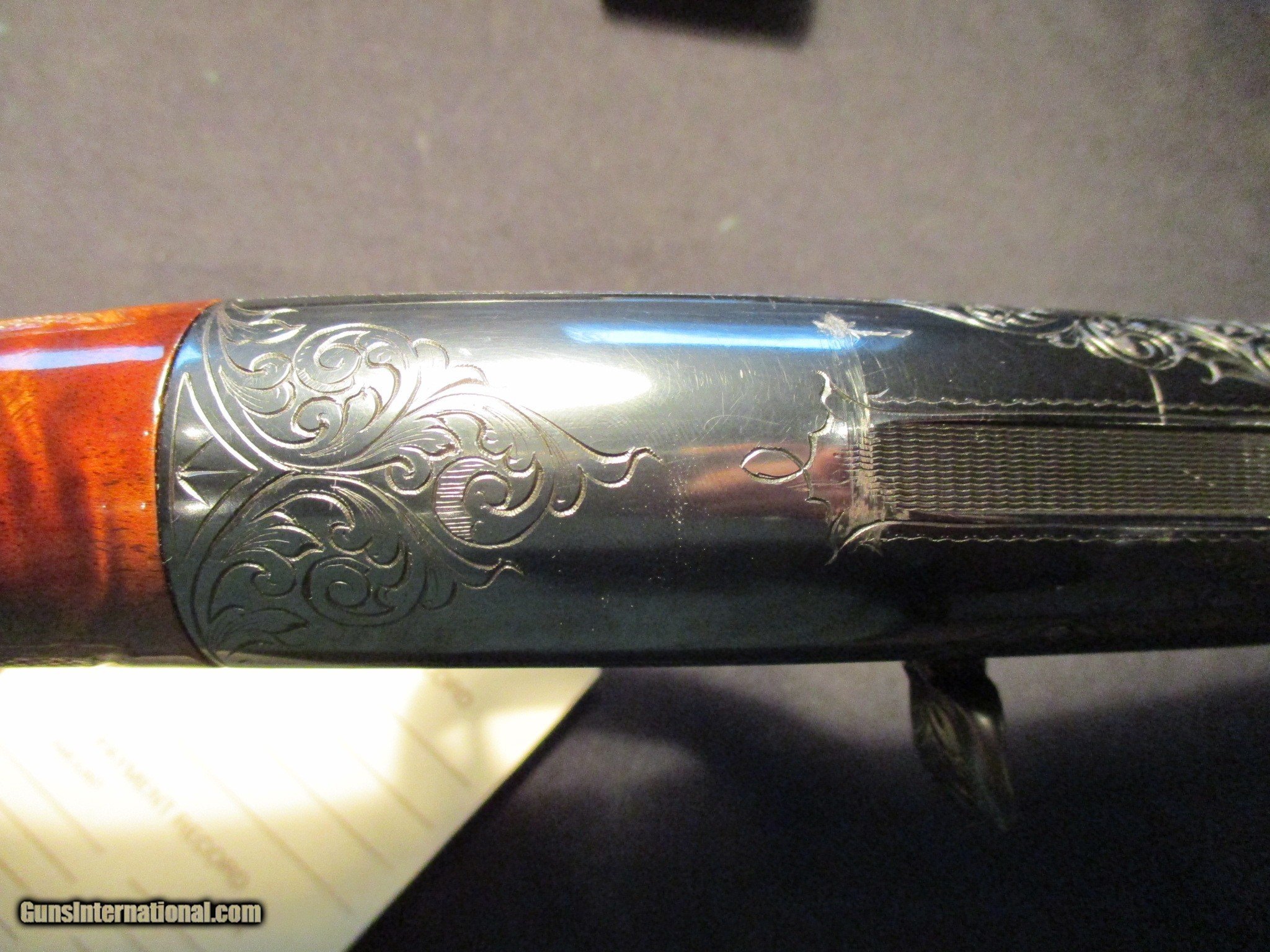 Description: Remington 1100 D grade, 20ga, with 2 barrels! one is a 26" IC, second is a 28" Mod. Both Vent rib, 2.75" chambers, both engraved to match the receiver! Beautiful gun! SN is L9145xxX. Factory finish on both wood and metal, no rust, no cracks. LOP is 14 1/4" as pictured. Email me if you would like these pics sent to you, they will come through bigger and better than on the listing page here. We do offer Lay-A-Way. Our standard terms are 25% down, 90 days. Initial deposit is not refundable. Email me with any questions. I am a store front dealer, and I will close s if the gun sells locally. Once it has aI will pull it from my shelves. Please check your local laws to confirm it is legal to own in your state! Buyer pays $25 shipping and insurance to your FFL in the lower 48. AK, HI or PR is extra. I will ship to California, NO PROBLEM! All my guns come with a non firing, 3 day unconditional return privilege, from the day UPS delivers to your dealer. Buyer pays shipping both ways if the gun comes back. I can add a new hard case by PLANO for secure shipping for $25 if the buyer wishes (highly recommended, cheap insurance, really helps keep the UPS monster from eating my guns!). No sales tax on guns ship out of Kansas, guns sold in Kansas are subject to Kansas sales tax. I am a licensed FFL, and will include a copy of my FFL with the gun for your dealers records. I will ship to a C&R if the gun is eligible. I will ship to California, but you need to confirm the gun is legal where you are, California or other. I am always looking for good clean, old original Winchesters to buy, consign, or trade, especially pre '64's model 70's and model 54's. WE ALSO TRADE FOR CLASSIC CARS AND TRUCKS! Email me with any questions, and good luck! SOLD |