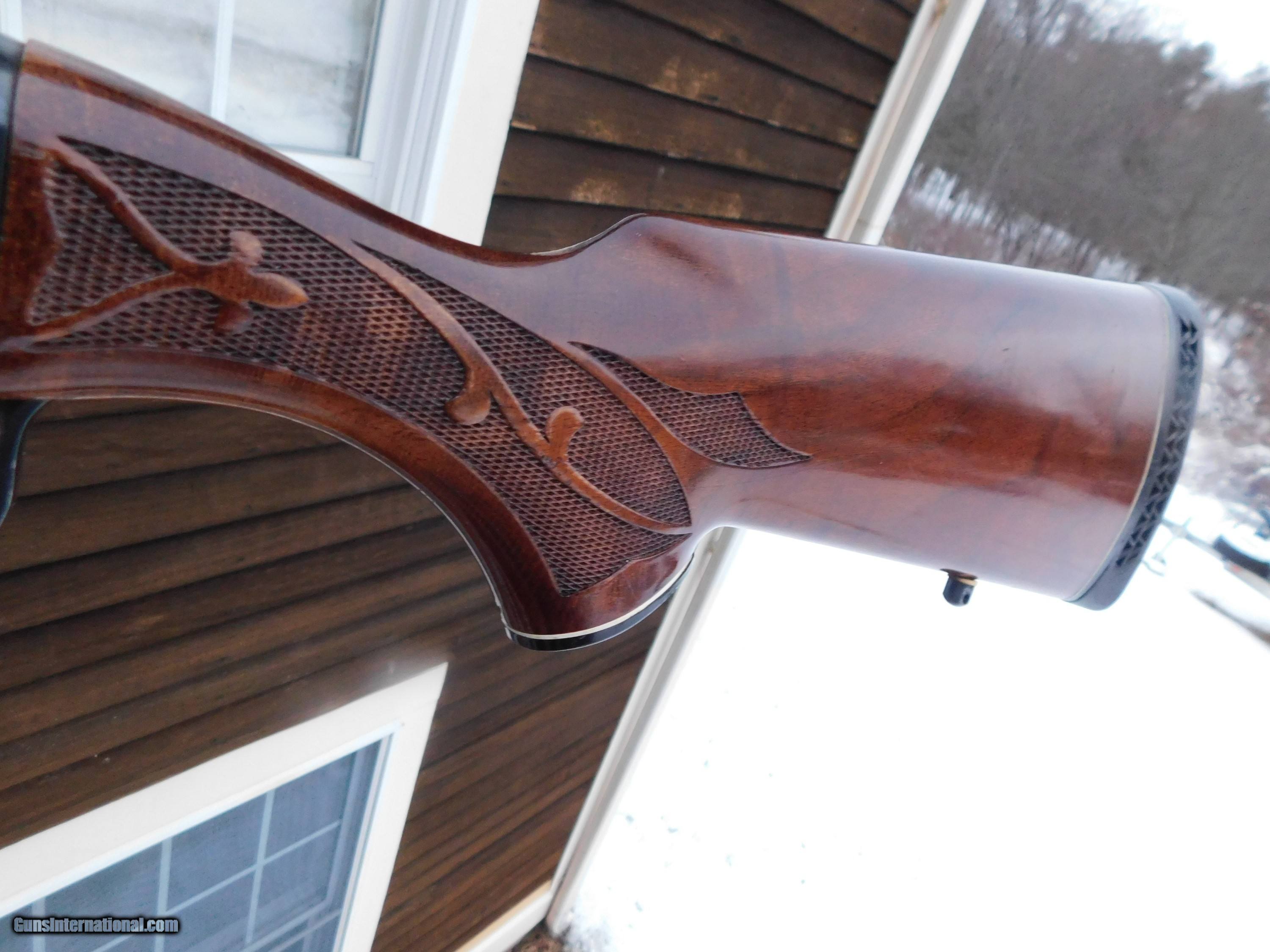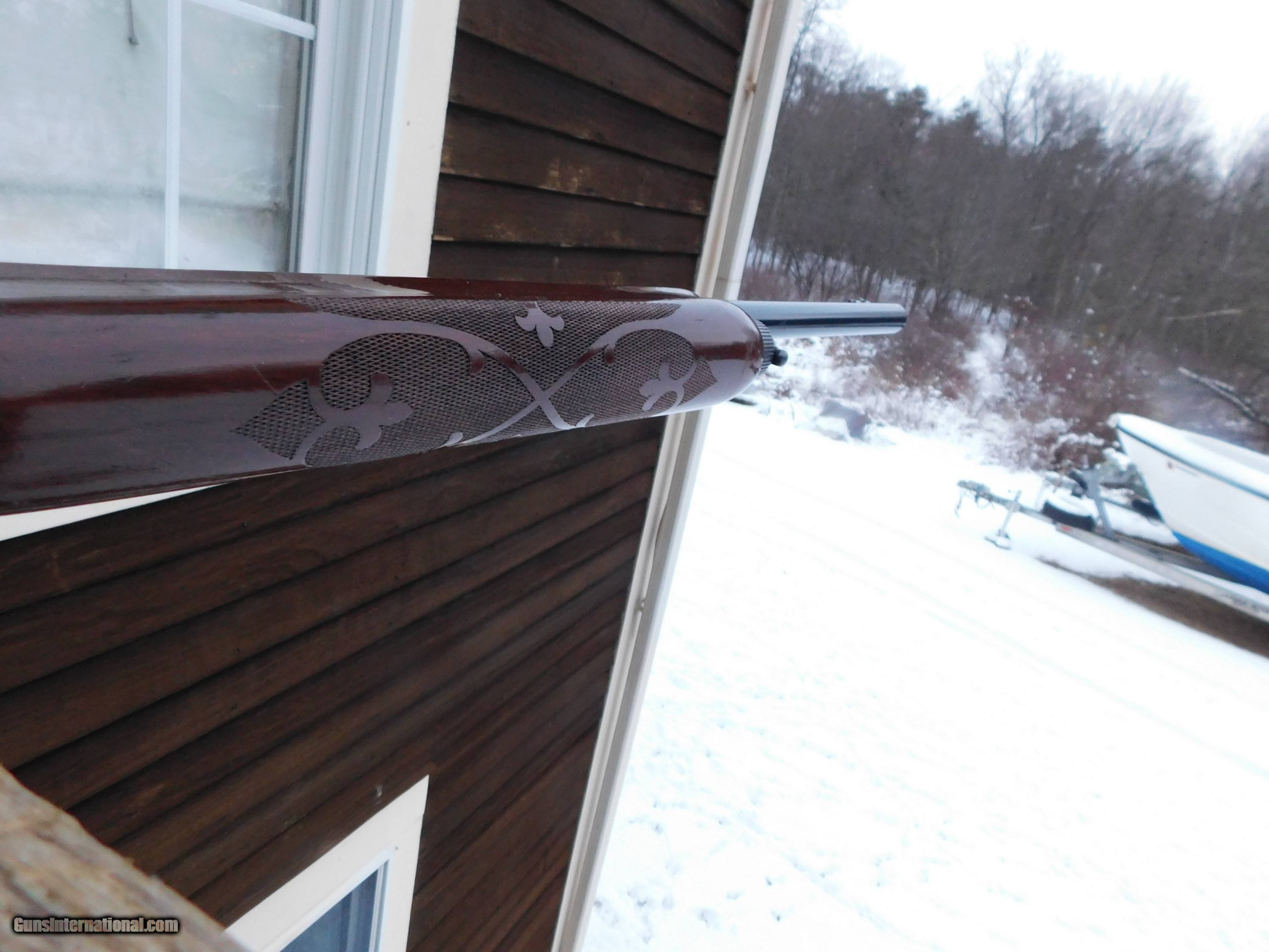 Description: Nice looking vintage 1100 slug gun; factor rifle sights (non rifled) 22" barrel. Nicely figured American Walnut Stocks Good to very good condition but not quire excellent. Factory front and rear rifle sight but the site blade (dovetaile) on the rear was removed before coming to us...should be easy to find on ebay or othe place for a few bucks. Better would be to use a B Squire saddled type scope mount that slips right over the receiver and requires no drilling. These are all over ebay for about$ 30.00. We have many used scopes that would be ideal for this gun 2 3/4" slugs only . LOP is 14" to factory recoil pad If anyone has any doubt as the the accuracy potentential of these smooth bore slug barrels in another listing we have a pic of a 3 shot 50 yard group that is essentially one hole. Addd a 2d hand bird barrel and you have a gun good for anthiing from pheasant to rabbit to deer or hogs Shipping is $ 65.00 IF YOU WOULD LIKE TO BUY THIS OR ANY OF OUR GUNS WE SUGGEST YOU PHONE US AND THEN ALSO FOLLOW UP WITH A TEXT OR EMAIL. IF YOU ARE INTERSTED IN A GUN THAT IS UNDER DEPOSIT AND WOULD LIKE TO BE NOTIFIED IF A SIMILAR GUN COMES IN DROP US A LINE AND WE WILL MAKE EFFORTS TO CONTACT YOU WHEN ONE DOES COME IN. WE HAVE OVER 2000 SALES ON ALL SITES WITH AN A+ RATING ON ALL WE ALSO KEEP AN INVENTORY OF OLDER PERIOD CORRECT SCOPES; CALL WITH NEEDS WE MOSTLY PICK VERY CLEAN AND LIGHLTY USED GUNS. WE ARE HAPPY TO TAKE CONSIGNMENT GUNS AND COLLECTIONS OR WILL BUY YOURS OUTRIGHT. WE SOMETIMES ARE EMPLOYED FOR ESTATE PURPOSES AND VALUATIONS. AT THIS TIME WE ARE ONLY ACCEPTING US POSTAL MONEY ORDERS OR BANK CHECKS FOR PAYMENT YOU MUST PROVIDE US WITH THE RECEIVING FFL'S CONTACT INFO OR THEIR LIC COPY IF YOU HAVE IT LAYAWAY PURCHASES NOT COMPLETED ON ANY RETURNED ITEM UNLESS NOT AS DESCRIBED OR DAMAGED ARE SUBJECT TO A 10% RELISTING/RESTOCKING FEE AND MUST BE RETURNED WITH NO NEW MARKS OR SCRATCHES, SENT BACK INSURED, PRIORITY SIGNATURE REQUIRED. ALL INFORMATION CONTAINED HEREIN IS BELIEVED TO BE ACCURATE BUT IS NOT GUARANTEED. WITH ANY OLDER OR USED GUN IT SHOULD BE INSPECTED BY A GUNSMITH PRIOR TO SHOOTING. Price: $659.00 Contact Seller |