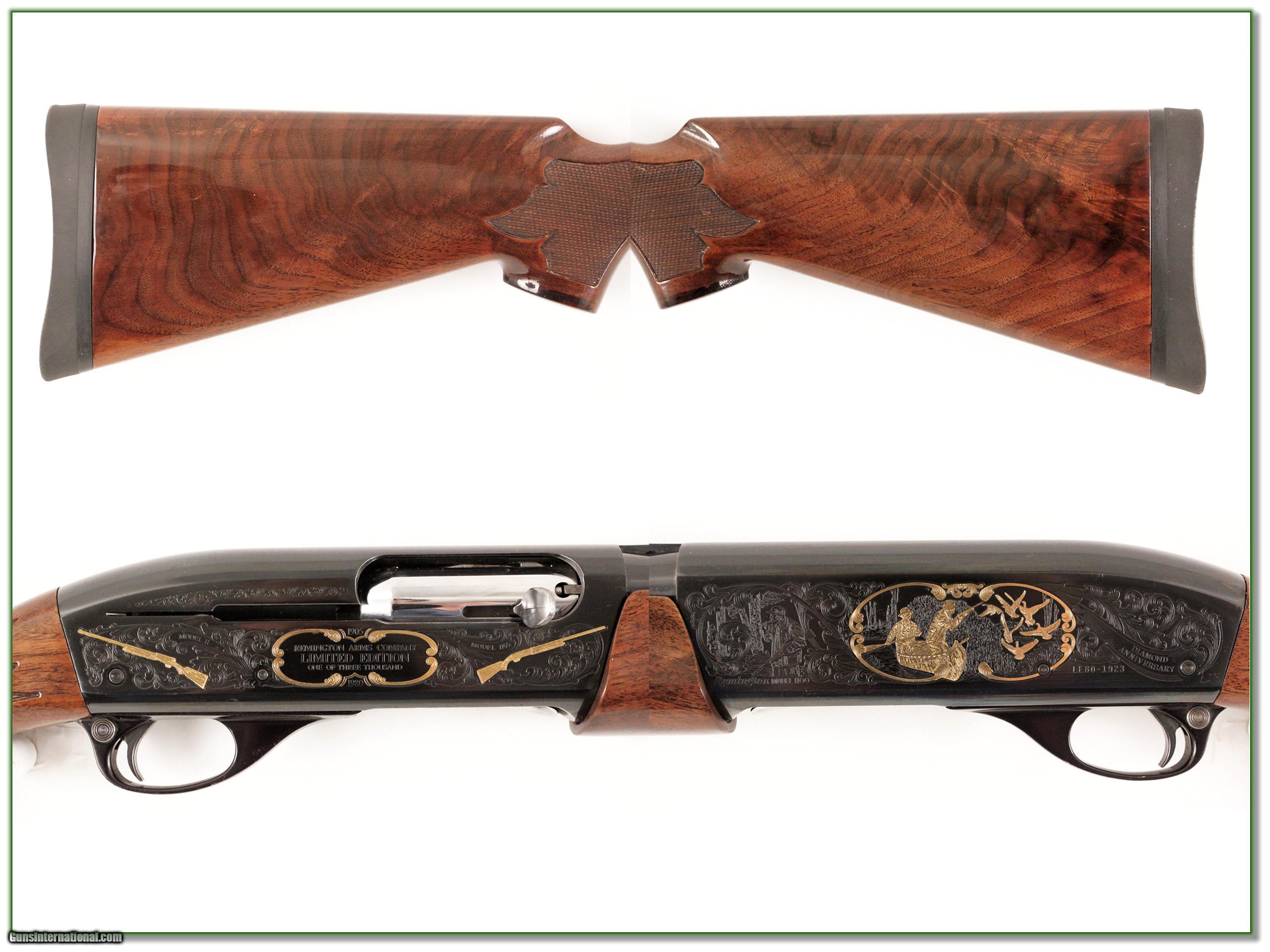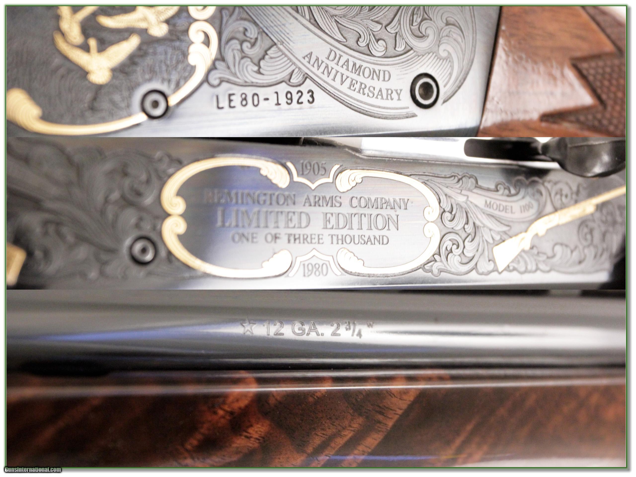 Description: Collectors, this is beautiful Remington 1100. It is the 1980 made Diamond Anniversary model. It is in excellent near new condition. I find no marks of note. It has beautiful wood and an engraved receiver with gold inlays. The barrel is a 28in VR with a modified choke tube. It will make a fine addition to your collection or be a high-end field or range gun! Either way it is a real Shooting Investment. Shipping and insurance is $35 or $15 more if you want it shipped in a new Plano hard case. Please email me with any questions or larger pictures. (I now consign quality firearms only 10%! Let me know if you have any you would like to sell!) [17-0030] Payment: Payment is by Money Order, Cashiers Check or Personal Check. I can now also accept MasterCard and Visa with a 3% convenience fee. PayPal can be used for some items but never firearms. Please let us know if you would like to pay via PayPal. Shipping: The shipping charge will be listed in each description. It is $35 for most guns. Some heavy guns or those insured for over $2000 will be higher. Shipments to Alaska and Hawaii are higher because air shipment is required. Most firearms are shipped within 5 days of receipt of payment. We prefer shipping at the beginning of the week to avoid firearms in transit over weekends. We package all shipments carefully and insure them for the full purchase price, rounded up to the next $100. In the unlikely event that damage occurs, it is important that you save all packaging material for the claims process. Optics are shipped Priority Mail and most other non-firearm shipments are shipped First Class. Returns: Our return policy is simple. If for any reason you are not pleased with your purchase, you may return your item for a refund. The only exception is ammunition, it cannot be returned. It is important to us that you are happy. Guns cannot be fired or dissembled before returning them and must be returned in the same condition as received. Notification of a return must occur with-in 3 days of receipt at your dealer. Shipping, convenience and dealer fees are not refundable and are the responsibility of the buyer. Lay-a-way: If needed, we offer a 60 day lay-a-way option on most firearms. It is 1/3 now, 1/3 in 30 days and 1/3 in 60 days. Lay-a-way firearm sales are final. Consigning your firearms with Shooting Investments: We will help you get top dollar for your firearms. While most local guns shops charge 20% or more, our fee is only 10% with a minimum of $50. At your local gun shop it might take months to sell. Selling on-line provides instant access to thousands of interested buyers. You won’t find any other on-line dealer willing to sell your firearms for only 10% or listing every gun on 4 separate s. Selling through an House typically costs the seller 15% and the buyer an addition 15% (so 30%) and you have to wait several months to sell and longer to receive funds. If properly priced, we will sell your firearms in a week or two. Send us an email or give us a call and we’ll explain how easy it is for you to get top dollar. Trading: We collect guns and usually just trade for guns we want to add to our collections. We often sell guns for others wanting to purchase one of ours. We find this the most fair to both of us. Our Commission is only 10% and we hold the gun you want until yours sells. Please contact us if you want to sell one of yours to buy one of ours. Help for California Buyers: We are happy to ship to California. It is the buyer’s responsibility to make sure any item you buy is legal in your state. We are also happy to help with your purchase of a firearm from someone other than us. If you see a gun you would like to buy but the seller can’t or won’t ship to California we can help. You buy the gun and have it shipped to us. We’ll then ship it to your California dealer. The cost for this service is only $30 + shipping. Let me know if we can help! SOLD |