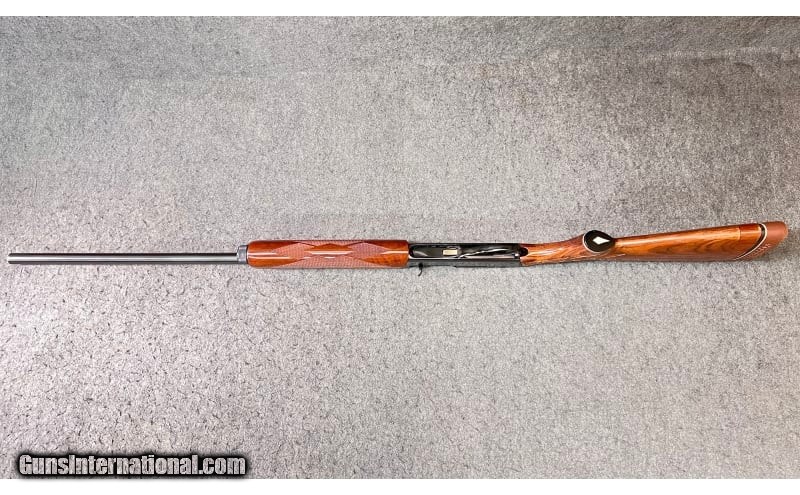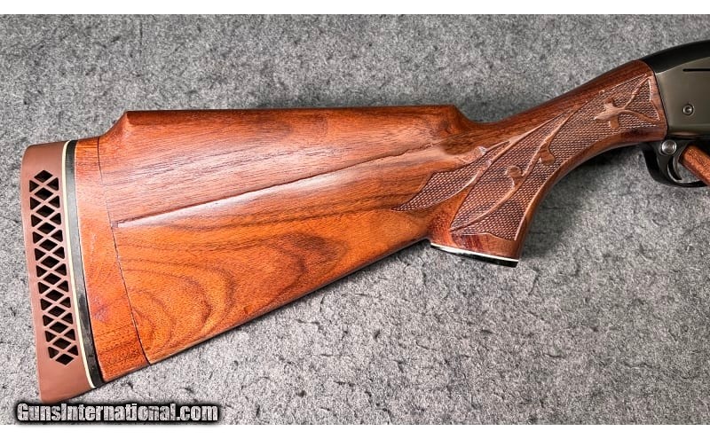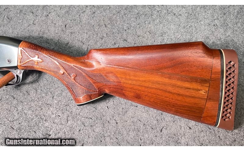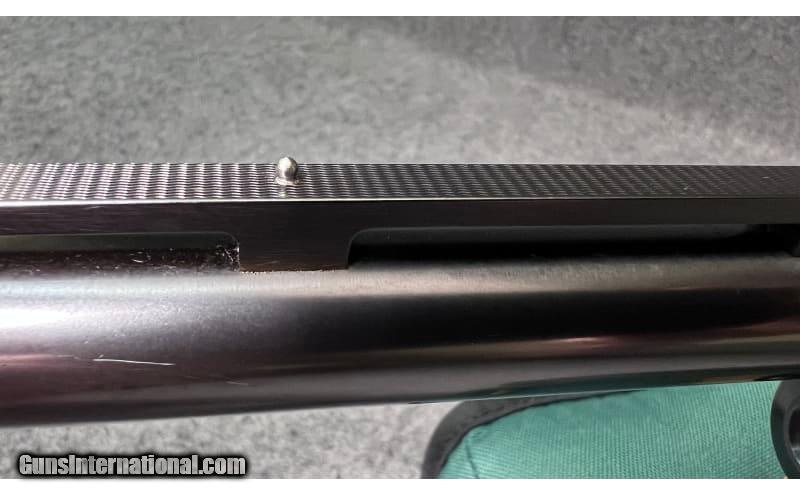 Description: This right hand semi-auto shotgun is a Remington Arms Company 1100 LT-20 Special chamber in 20 Gauge [2¾ chamber]. It has a front ivory white bead fixed sight, a mid-barrel small brass bead sight, a wavy textured top rib to reduce glare, a round, diamond checkered wood forearm, a smooth, curved trigger, a WHITE LINE by Pachmayr ventilated rubber butt pad, a 14" LOP, and an overall length of 45¾". The bluing is in exceptionally good condition on all three barrels and the receiver, showing very little to no bluing loss overall. The wood stock has been customized by the addition of an elevated cheek rest and lengthened. The bore is bright and shiny with no rust or erosion observable. 20 Gauge SOLD Chambers: 2¾" chamber Metal Condition: "Bluing is in exceptionally good condition on all three barrels and the receiver, showing very little to no bluing loss overall Wood Condition: Wood stock has been customized by the addition of an elevated cheek rest and lengthened Bore Condition: Bore is bright and shiny with no rust or erosion observable Barrels: 25" ventilated rib barrel Triggers: "Smooth, curved trigger Stock Dimensions: "14"" LOP, overall length 45¾"" Fore End: "Round, diamond checkered wood forearm Butt Pad: WHITE LINE by Pachmayr ventilated rubber butt pad Weight: 6 lbs 12 oz Sights: "Front ivory white bead fixed sight, mid-barrel small brass bead sight, wavy textured top rib to reduce glare Chokes: 25" [Skeet] 23" [Modified] 21" [Imp Cylinder] Item Location: Wichita, KS |
