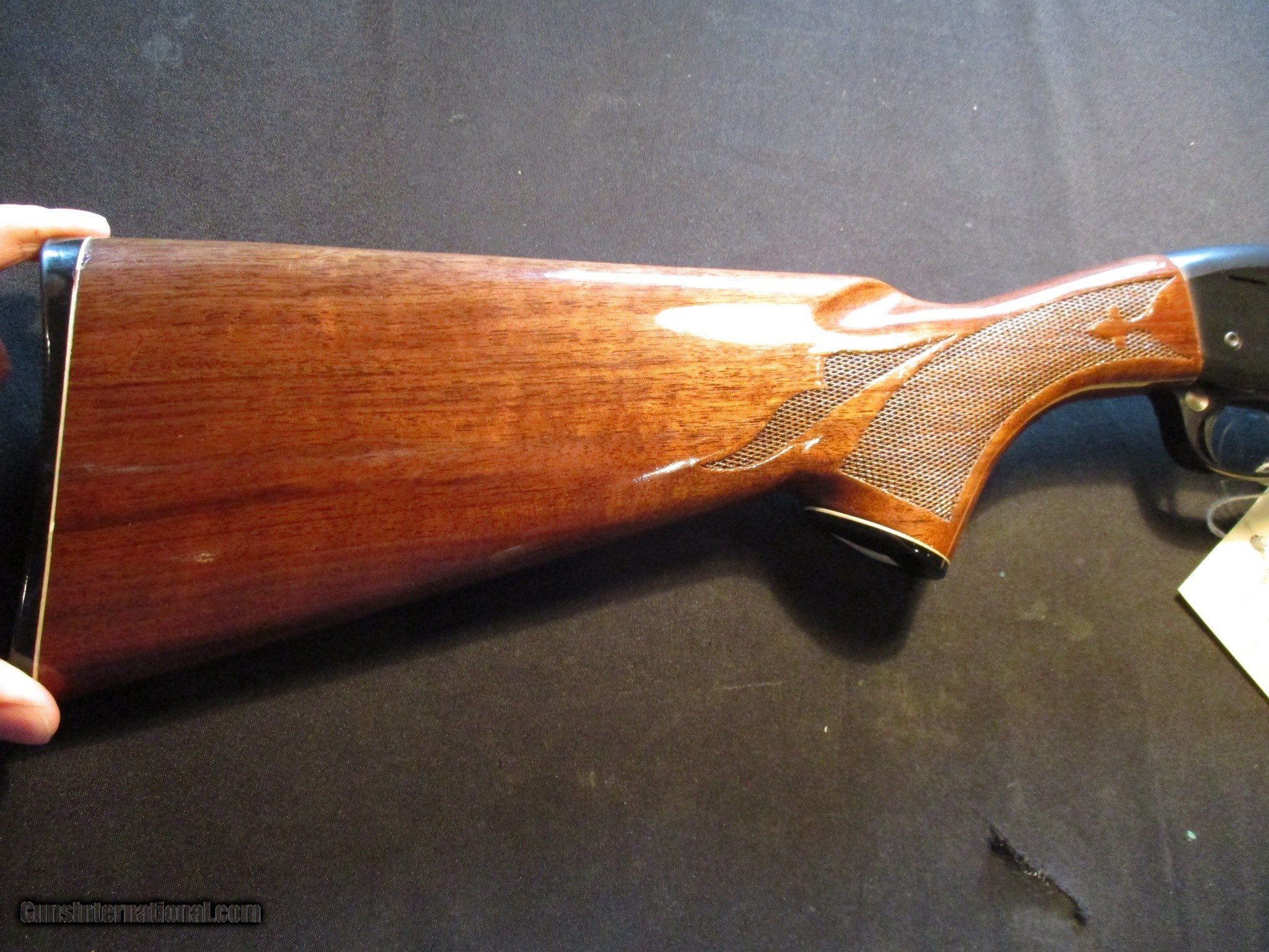 Description: Remington 1100 LT-20, 20ga, 2.75" chamber with a vent rib, fixed Full choke. SN is N0550xxK. Factory finish on both wood and metal, factory butt plate, nice clean all original gun. Email me if you would like these pics sent to you, they will come through bigger and better than on the listing page here. We do offer Lay-A-Way. Our standard terms are 25% down, 90 days. Initial deposit is not refundable. Email me with any questions. I am a store front dealer, and I will close s if the gun sells locally. Once it has aI will pull it from my shelves. Please check your local laws to confirm it is legal to own in your state! Buyer pays $25 shipping and insurance to your FFL in the lower 48. AK, HI or PR is extra. I will ship to California, NO PROBLEM! All my guns come with a non-firing, 3 day unconditional return privilege, from the day UPS delivers to your dealer. Buyer pays shipping both ways if the gun comes back. I can add a new hard case by PLANO for secure shipping for $25 if the buyer wishes (highly recommended, cheap insurance, really helps keep the UPS monster from eating my guns!). No sales tax on guns ship out of Kansas, guns sold in Kansas are subject to Kansas sales tax. I am a licensed FFL, and will include a copy of my FFL with the gun for your dealer’s records. I will ship to a C&R if the gun is eligible. I will ship to California, but you need to confirm the gun is legal where you are, California or other. WE BUY AND CONSIGN GUNS AND GUN COLLECTIONS! We will travel to pick up collections! I am always looking for good clean, old original Winchesters to buy, consign, or trade, especially Pre '64's model 70's and model 54's. WE ALSO TRADE FOR CLASSIC CARS AND TRUCKS! Email me with any questions, and good luck! SOLD |