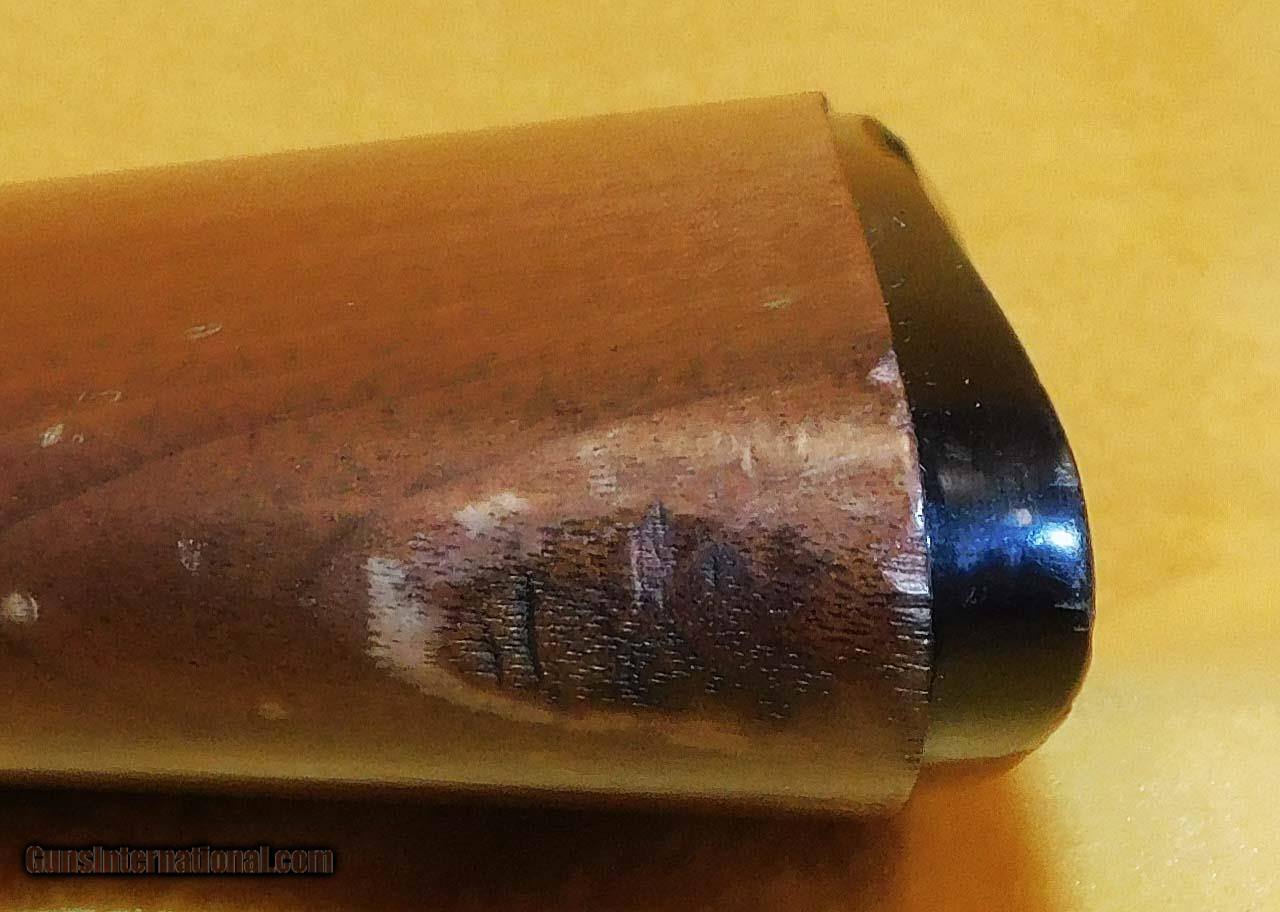 Description: REMINGTON 1100 (LT TWENTY) IN .20 GAUGE CAL., WITH 28" BARREL. COLOR BLUE. CONDITION 95%?. SERIAL NUMBER R125902K. REMINGTON 1100 MODEL LT TWENTY IN .20 GAUGE CALIBER, SINGLE BEAD VENT RIB MIRROR BORE BARREL WITH FULL SCREW IN CHOKE, 2 3/4 INCH CHAMBER, STOCK AND FORE ARM EXCELLENT, ALL MEATAL EXCELLENT, REPAIRED CHIP TO HEAL OF BUTT STOCK WITH WRONG REMINGTON BUTT PLATE, THIS WOULD BE A 98% FIREARM IF NOT FOR THE REPAIRED HEAL OF THE BUTT STOCK AND WRONG BUTT PLATE, 95% OVERALL CONDITION, OUR STOCK # D4394 SOLD |