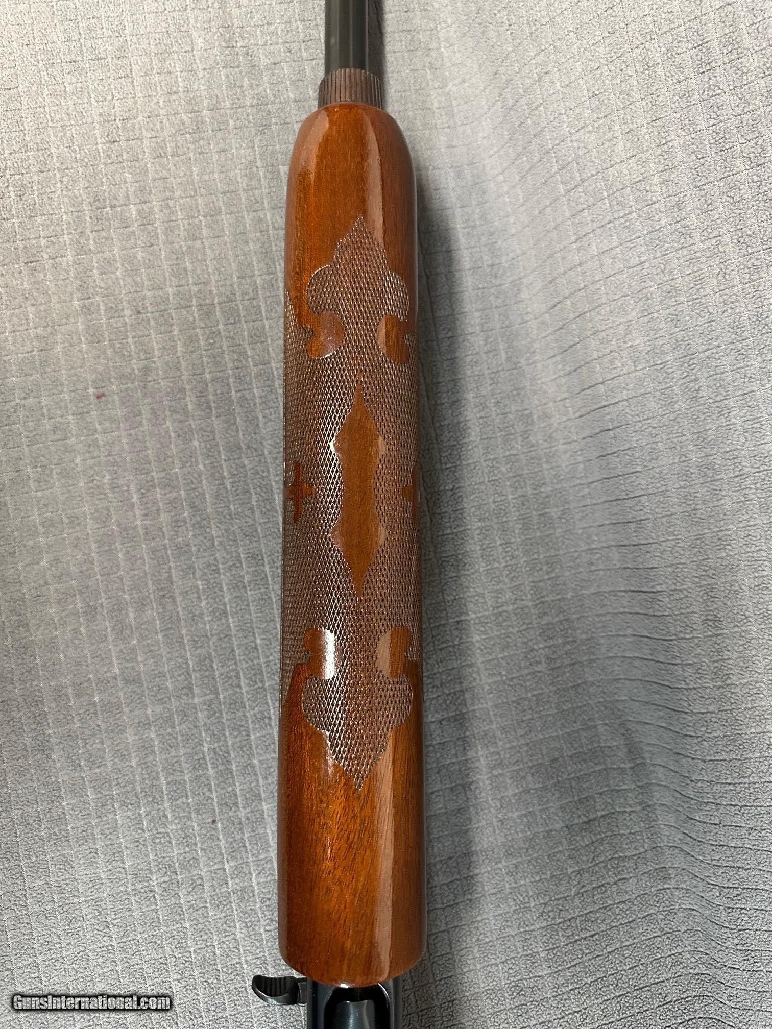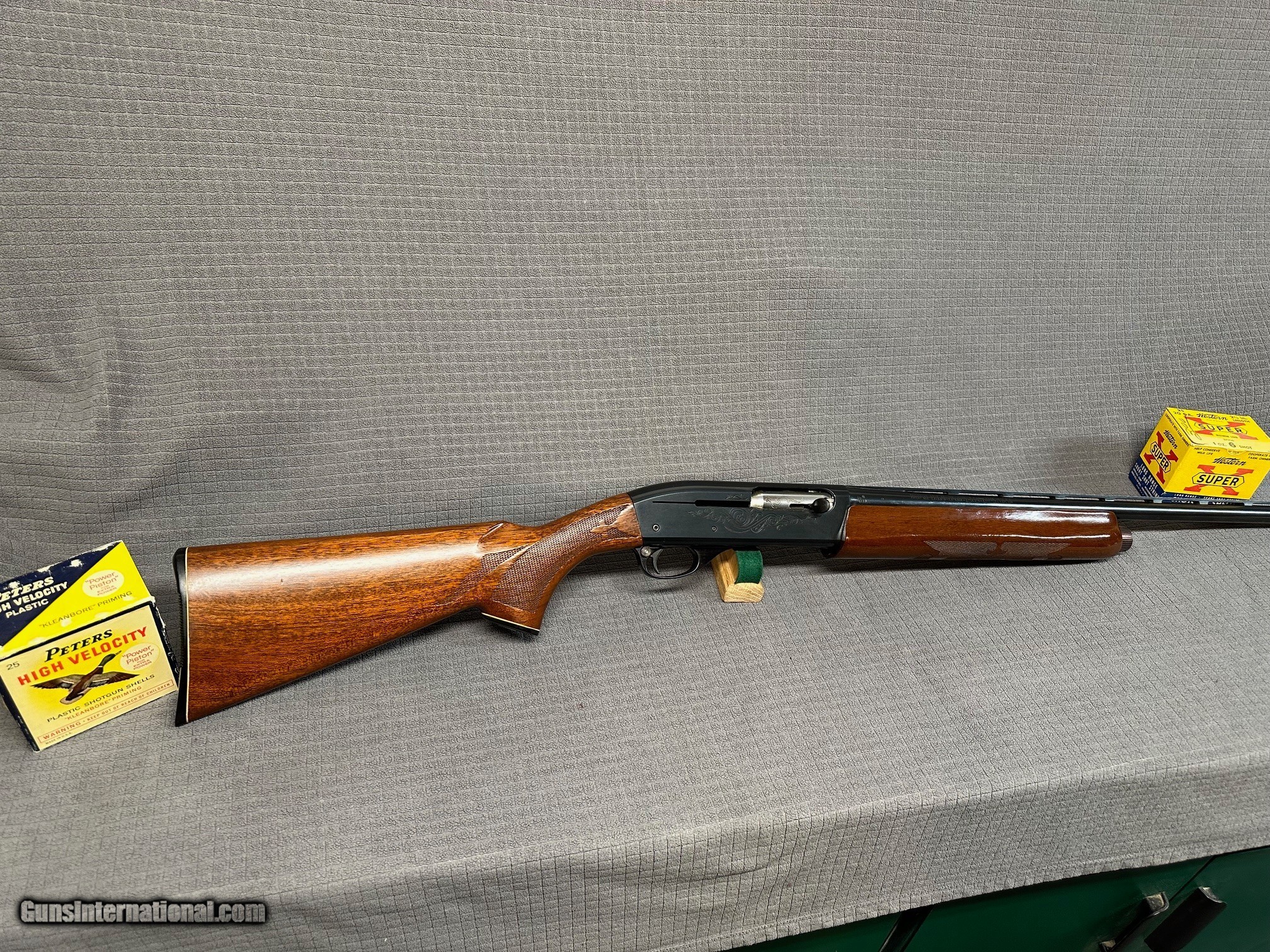 Description: **NEARLY NEW CONDITION** NOT Often found and seldom in this condition. Remington 1100 Lightweight. 20Ga. 2-3/4" chamber. This one has a 26" Improved cylinder vent rib barrel. Awesome grouse,quail, or Hun gun weighing in at 6.25 #. These were made from 1970-76 on the lightweight frame. Mahogany wood with pressed checkering. This one has seen little use. 99% overall metal & wood. $50.00 Shipping & Insurance to your FFL. NO CA SALES. Thanks for looking. SOLD |