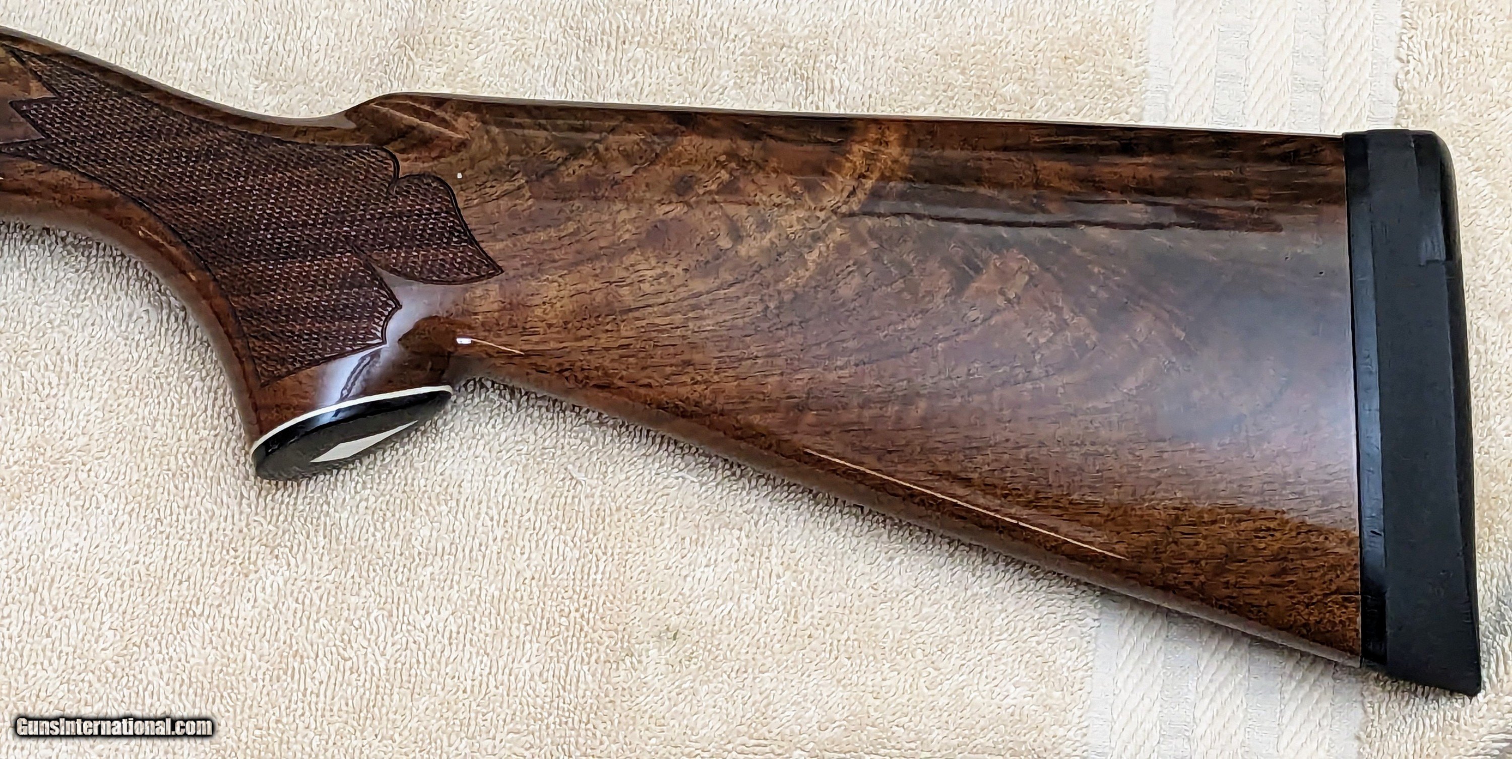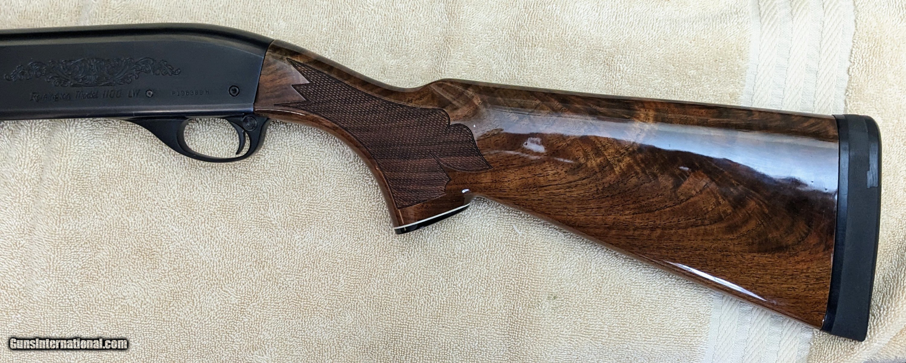 Description: REDUCED PRICE! Manufactured in 1995, this 1100 LW Skeet-T is outstanding. Has a couple very light handling marks and one very light scratch that is shown in close-up of left side of receiver. Have to hold it just right to the light to see it. Better than average nicely figured glossy walnut. An after factory recoil pad has been added with LOP of 14.5 in. The trigger has been lightened by a gun smith to about 4 lbs. Well taken care of and is easily 98%. Price includes shipping to FFL and no CC fees. SOLD Shotgun Gauge: .410 Gauge Manufacturer: Remington Model: 1100 LW Skeet-T Serial Number: P197389H Barrel Length: 25 in Condition: 98% Stock: Nicely figured glossy walnut LOP: 14.5 Manufacture Date: 1995 |