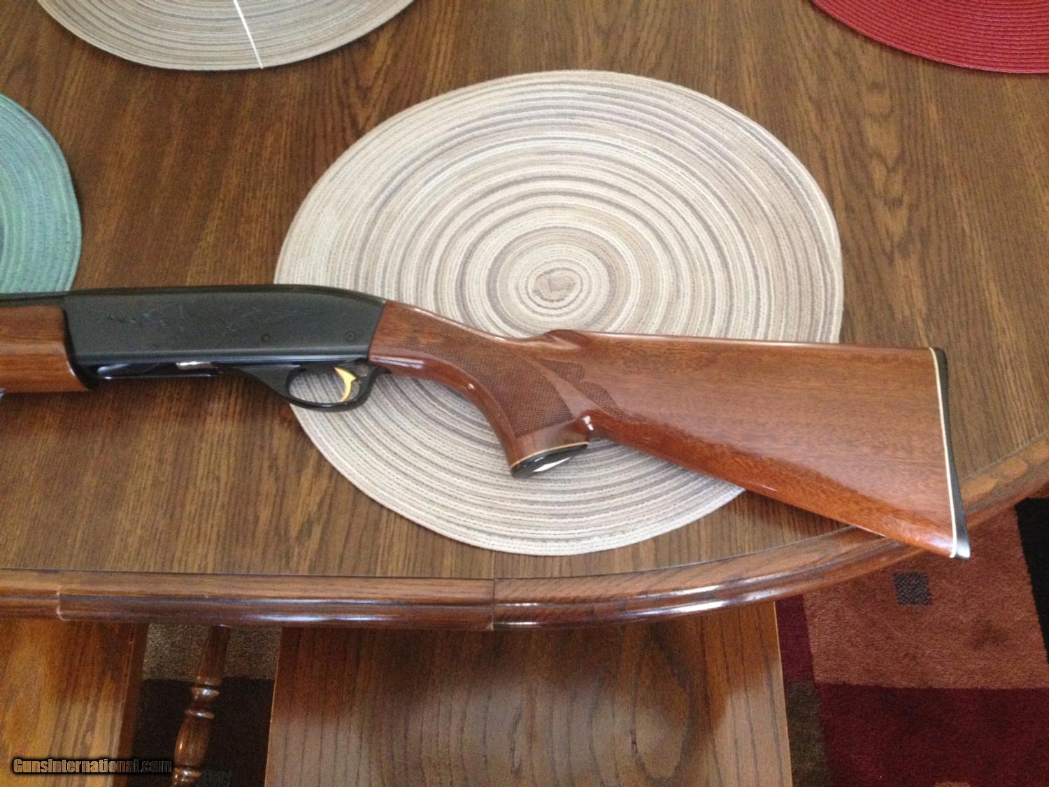 Description: Sweet little 20 gauge weighs 6 pounds 12 ounces. Looks unfired, only blemish is a spot on stock where someone apparantly repaired a scratch. I believe these were made in 1972 and it's my understanding Remington ran short of the Mahogany stocks and shipped some with the heavier Walnut stocks but this one has the Mahogany which is lighter. 28" vent rib full choke, fixed. Shipping is 30.00 insured and payment by Postal MO. SOLD |